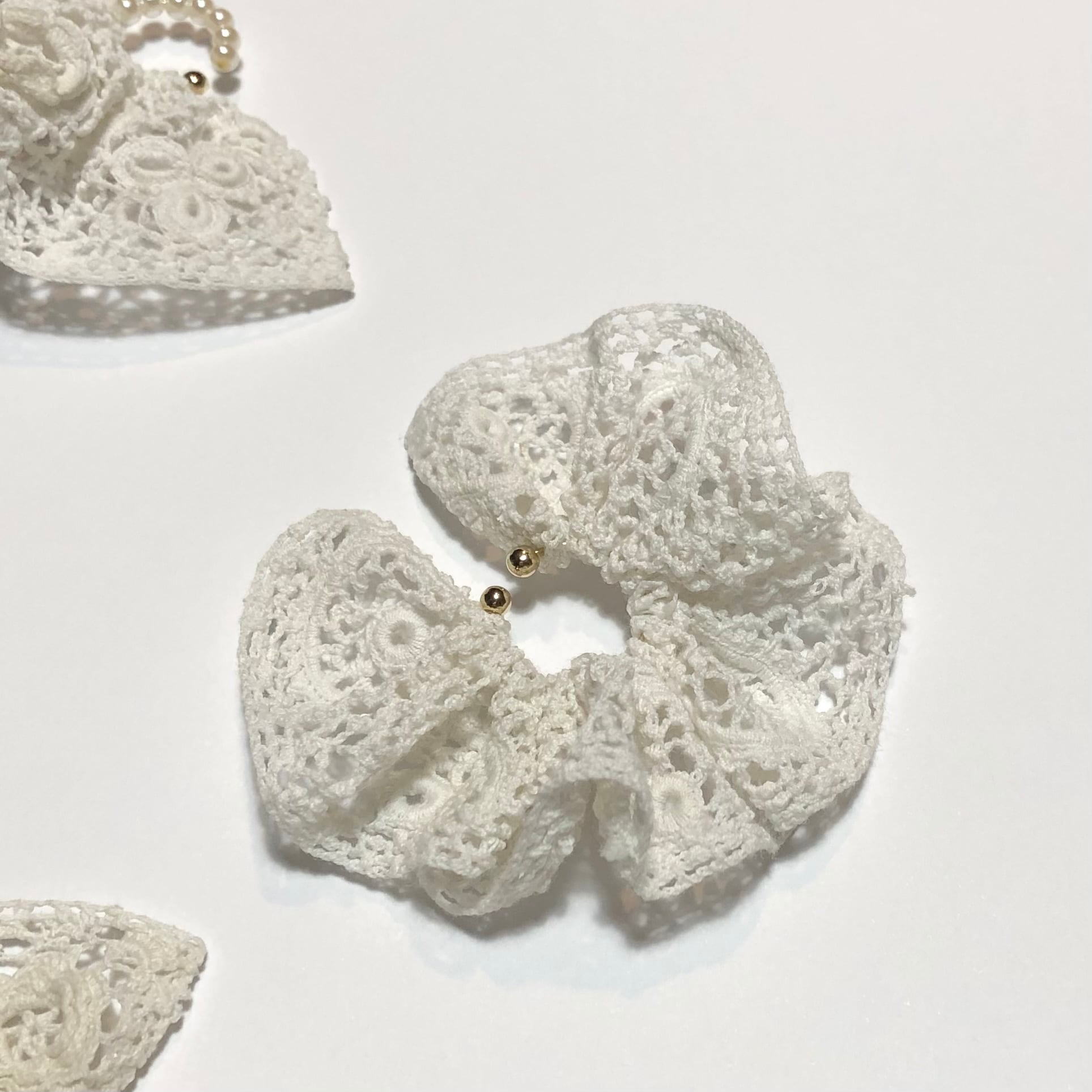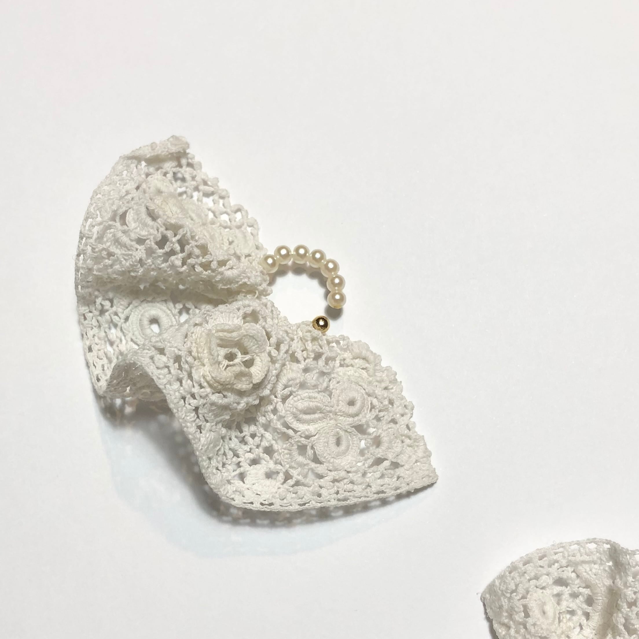 素材 アンティークレース(アイリッシュクロッシェ)、真鍮+メッキ、樹脂パール
