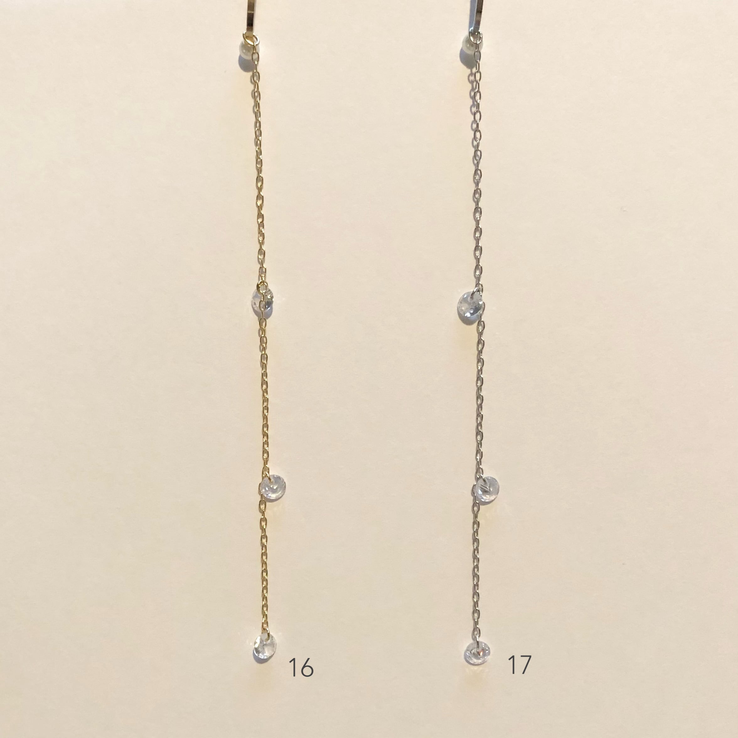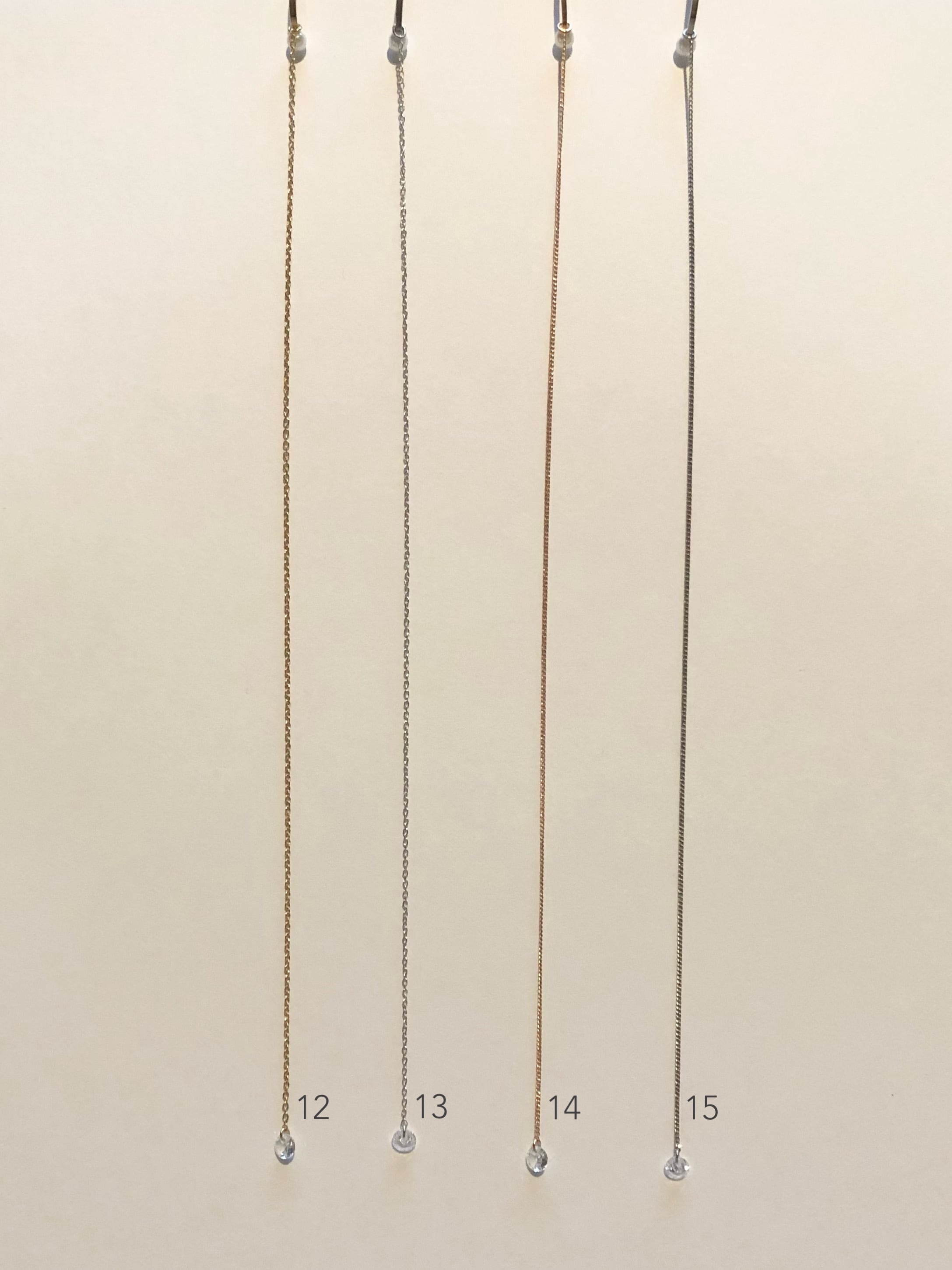大きさ チェーンの長さ 1〜3約9.5cm、4と5約4cm、6と7約5.5cm、8と9約4cm、10と11約5.5cm、12〜15約18.5cm、16と17約9.5cm