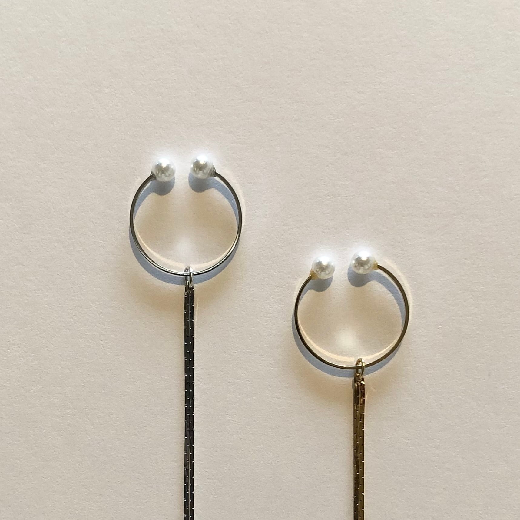 長いチェーンがポイントになるイヤーカフです。