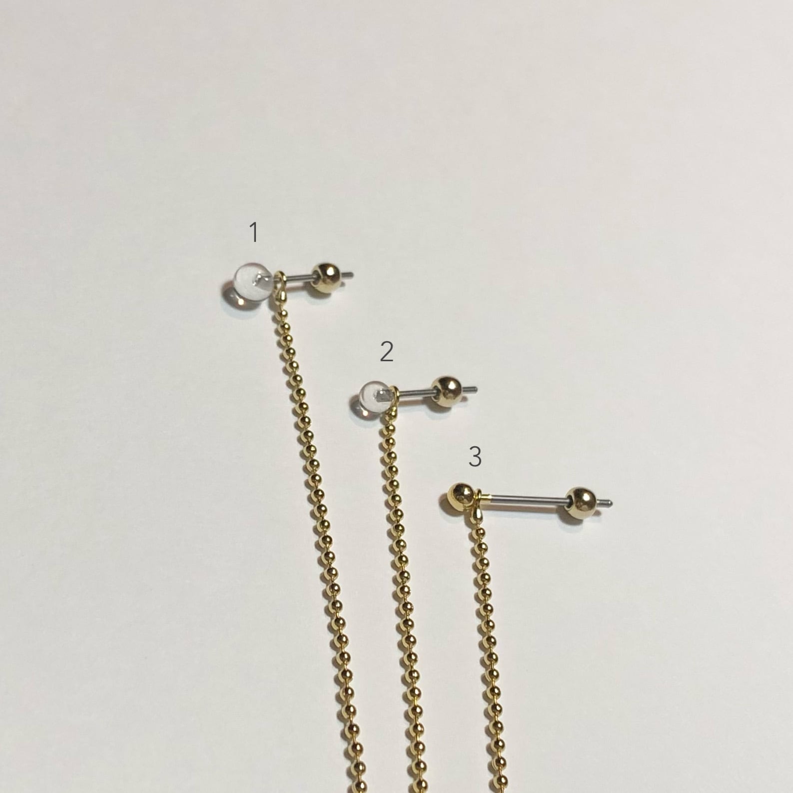長いボールチェーンが揺れるピアスです。