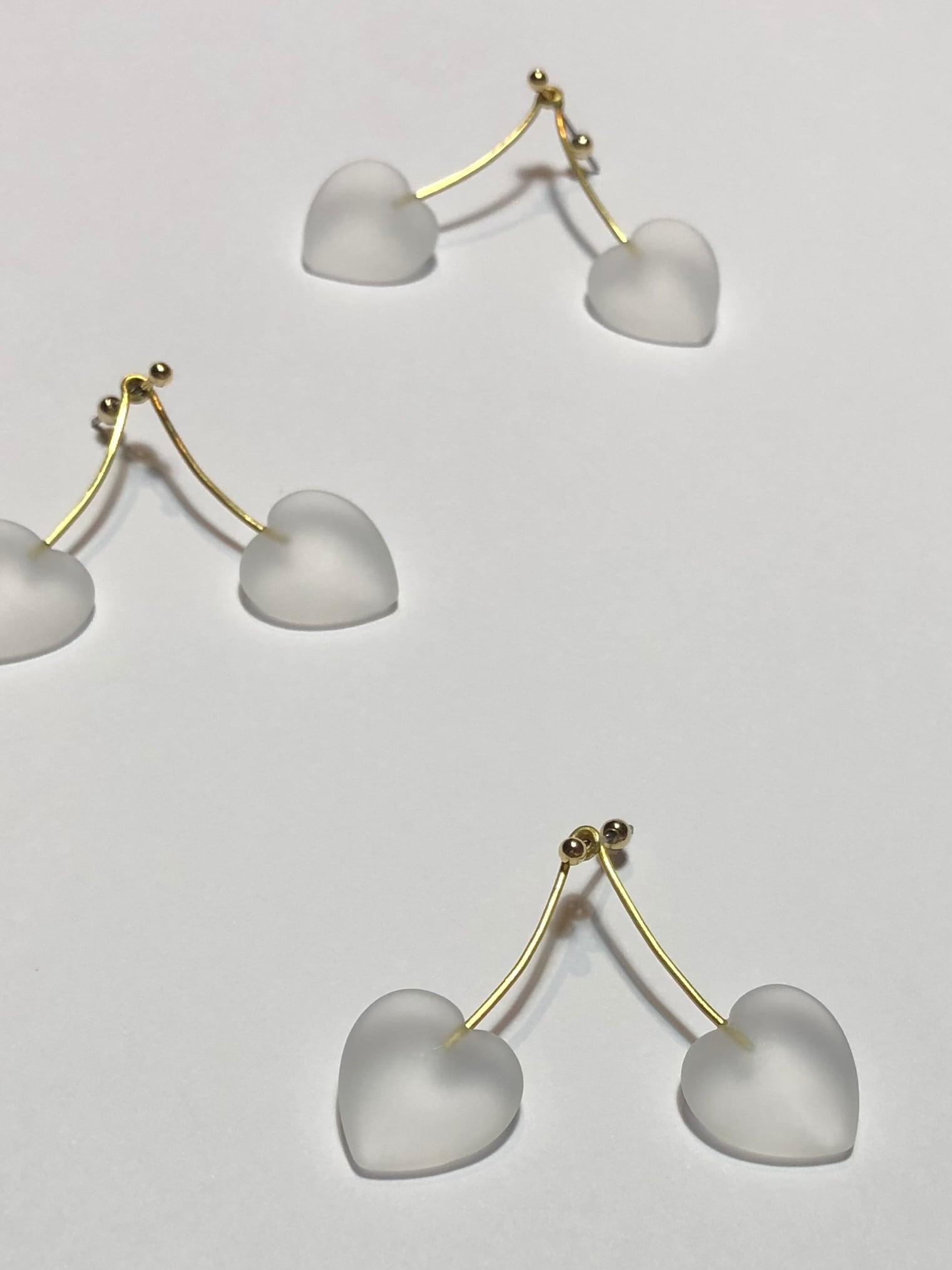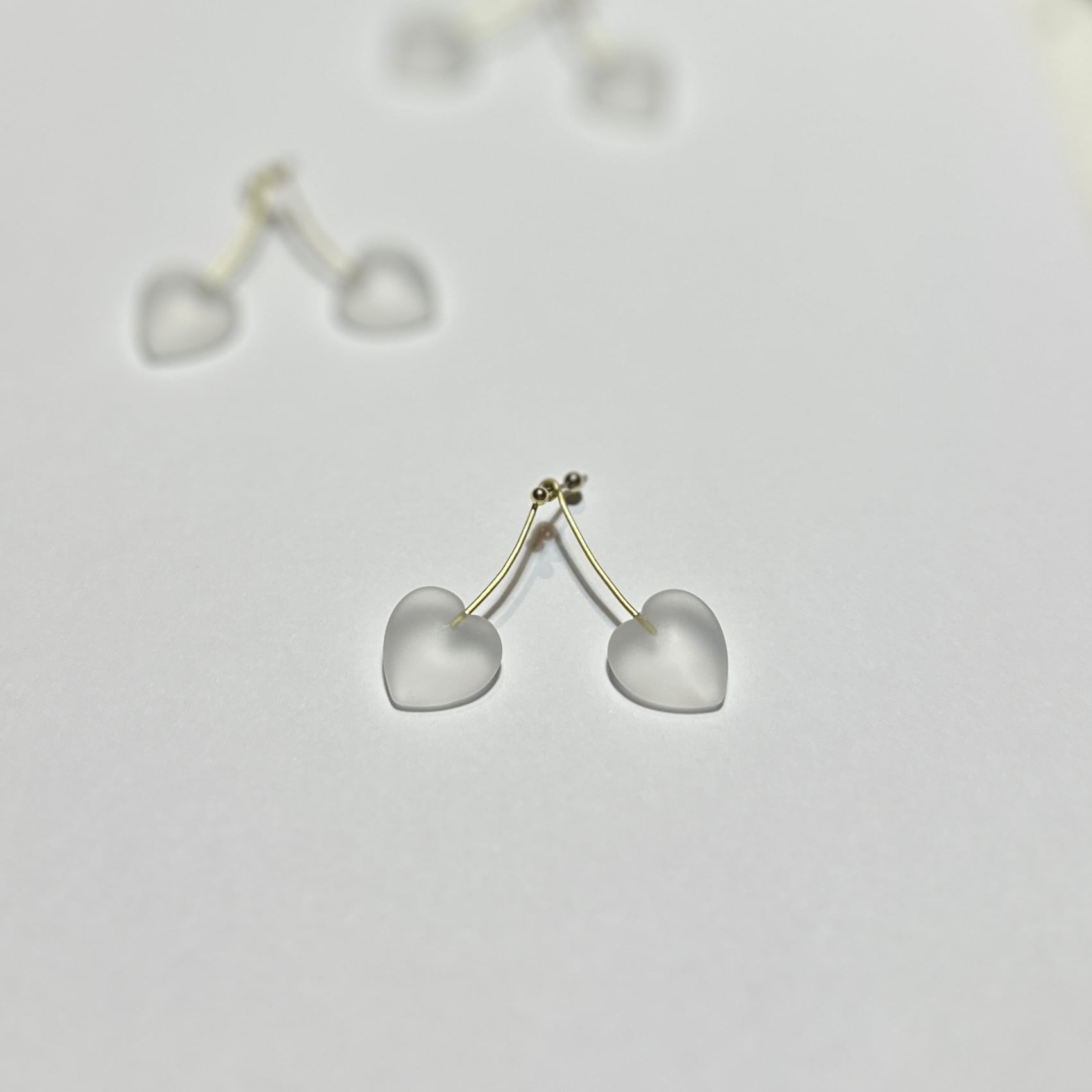 ハートの水晶でさくらんぼを模したピアスです。