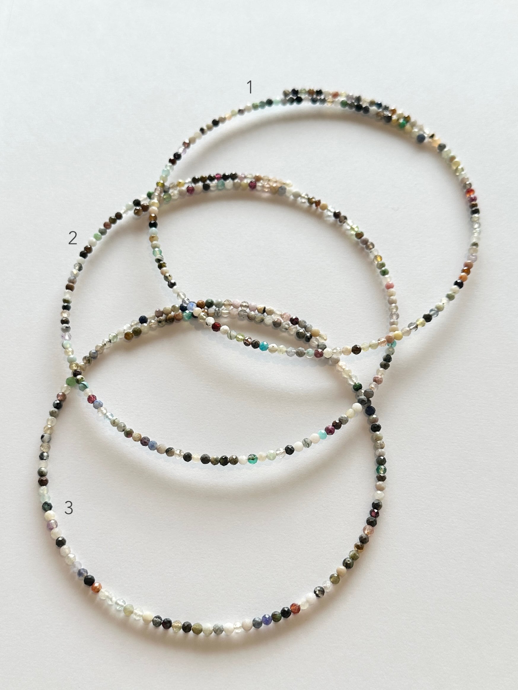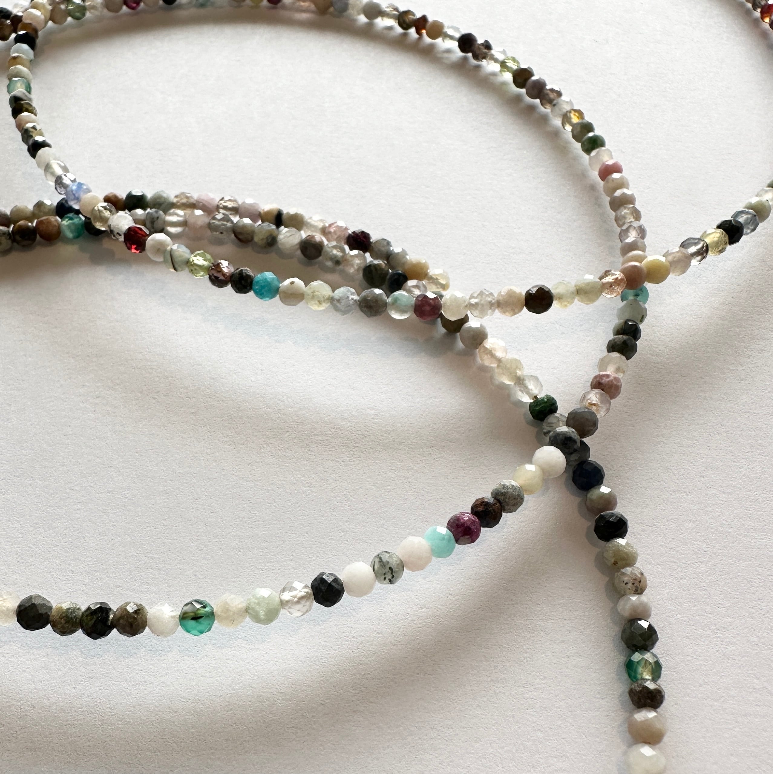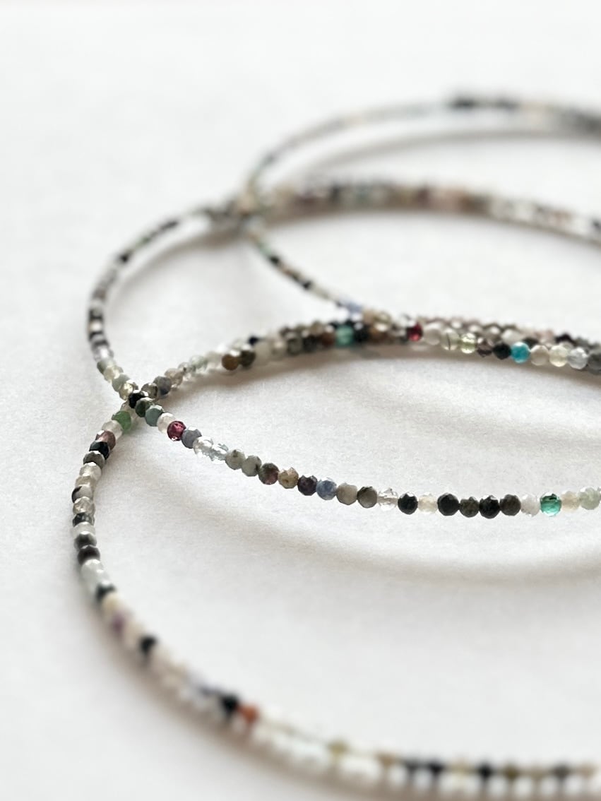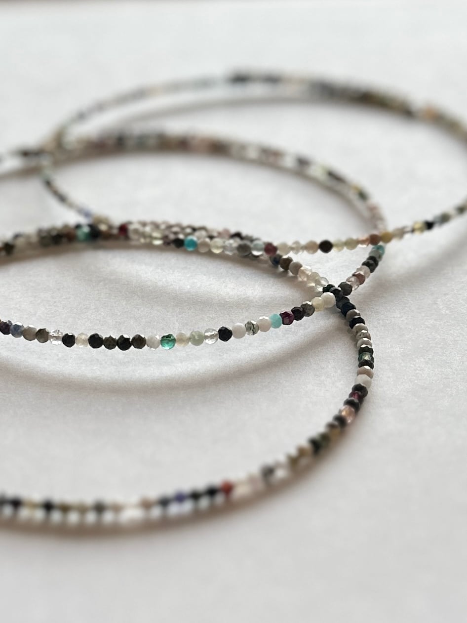 大きさ 天然石約3mm、チョーカー部分直径約10.5cm、首周りぐるりで約34cm〜約40cm