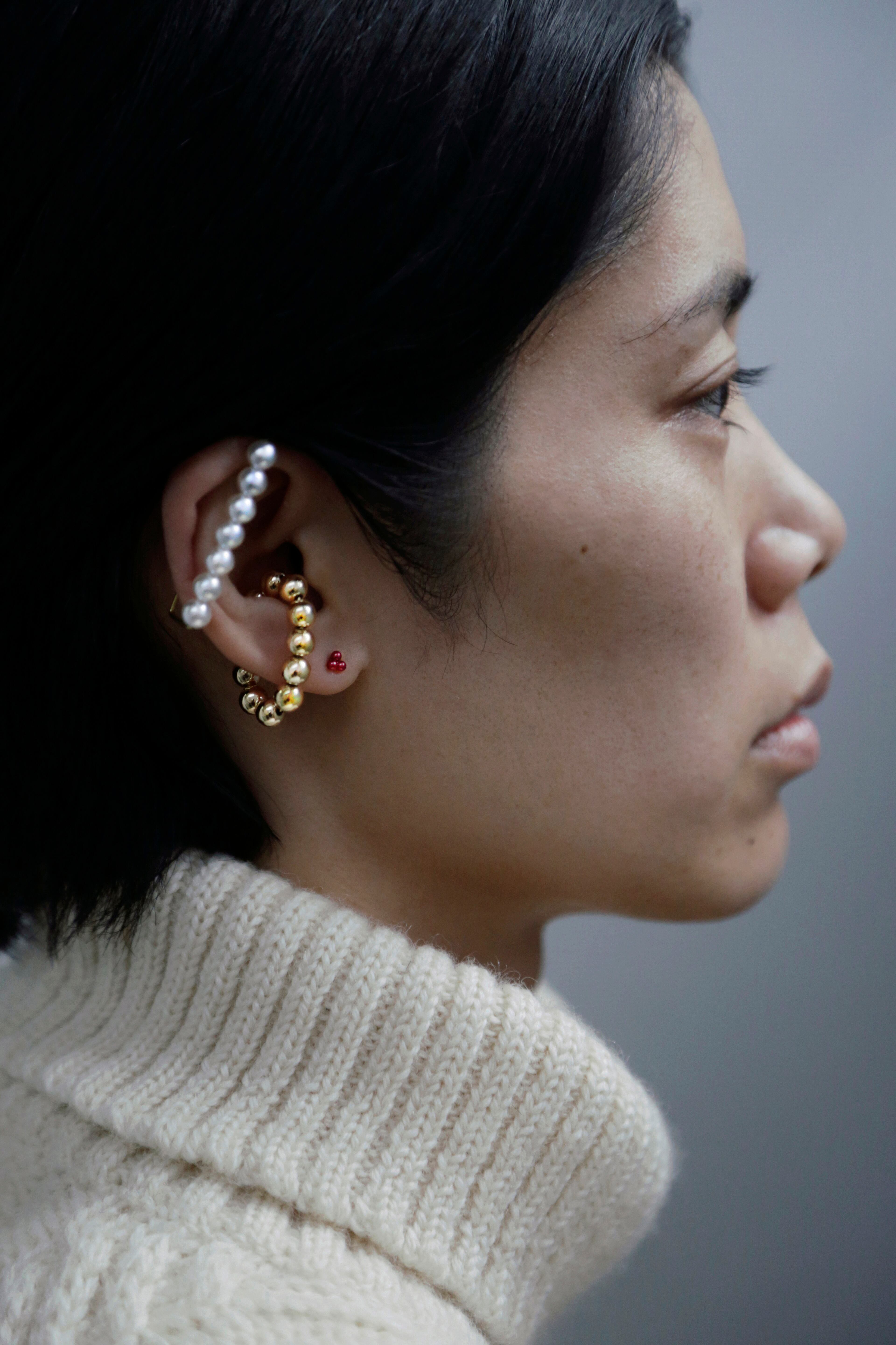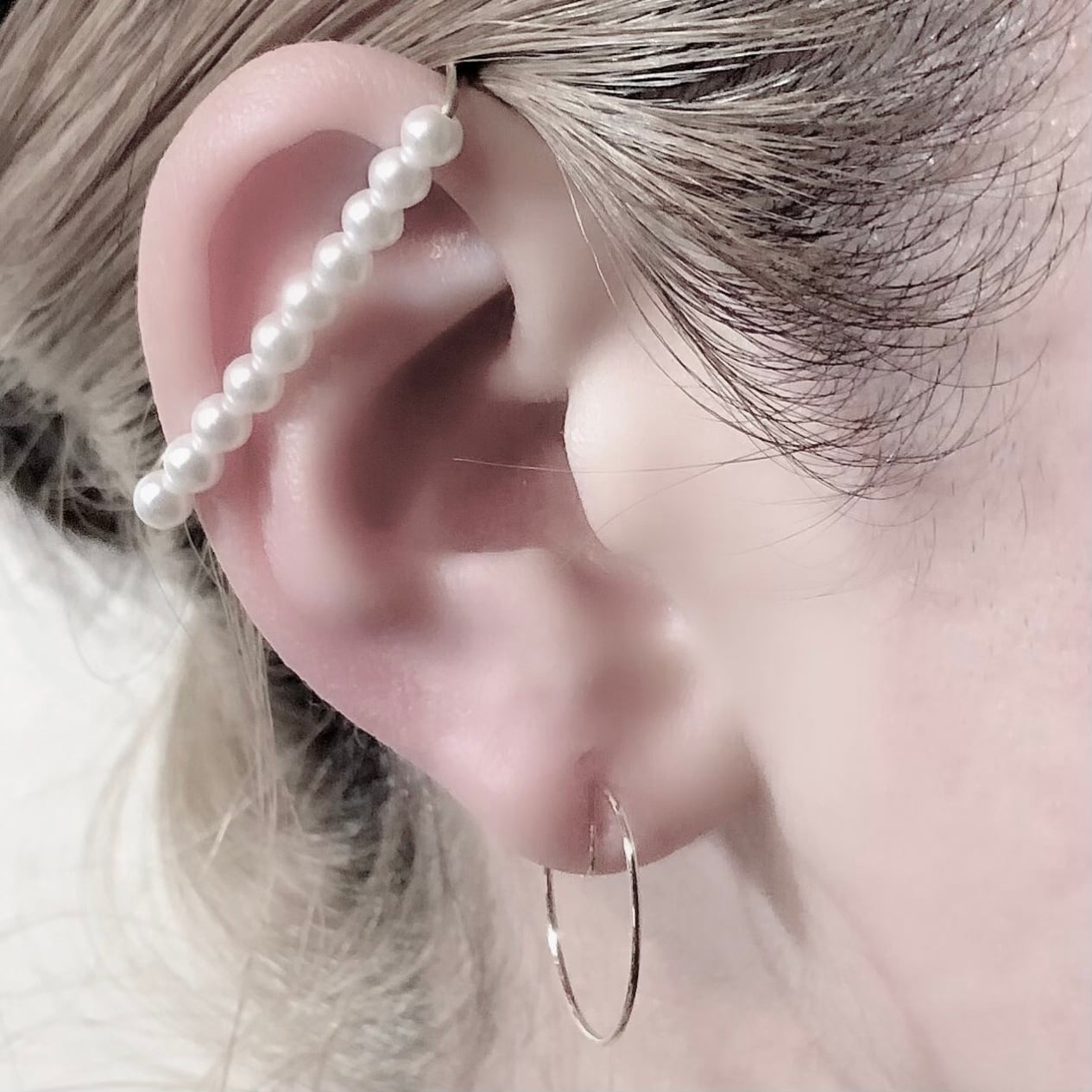 line pearl ear cuff white