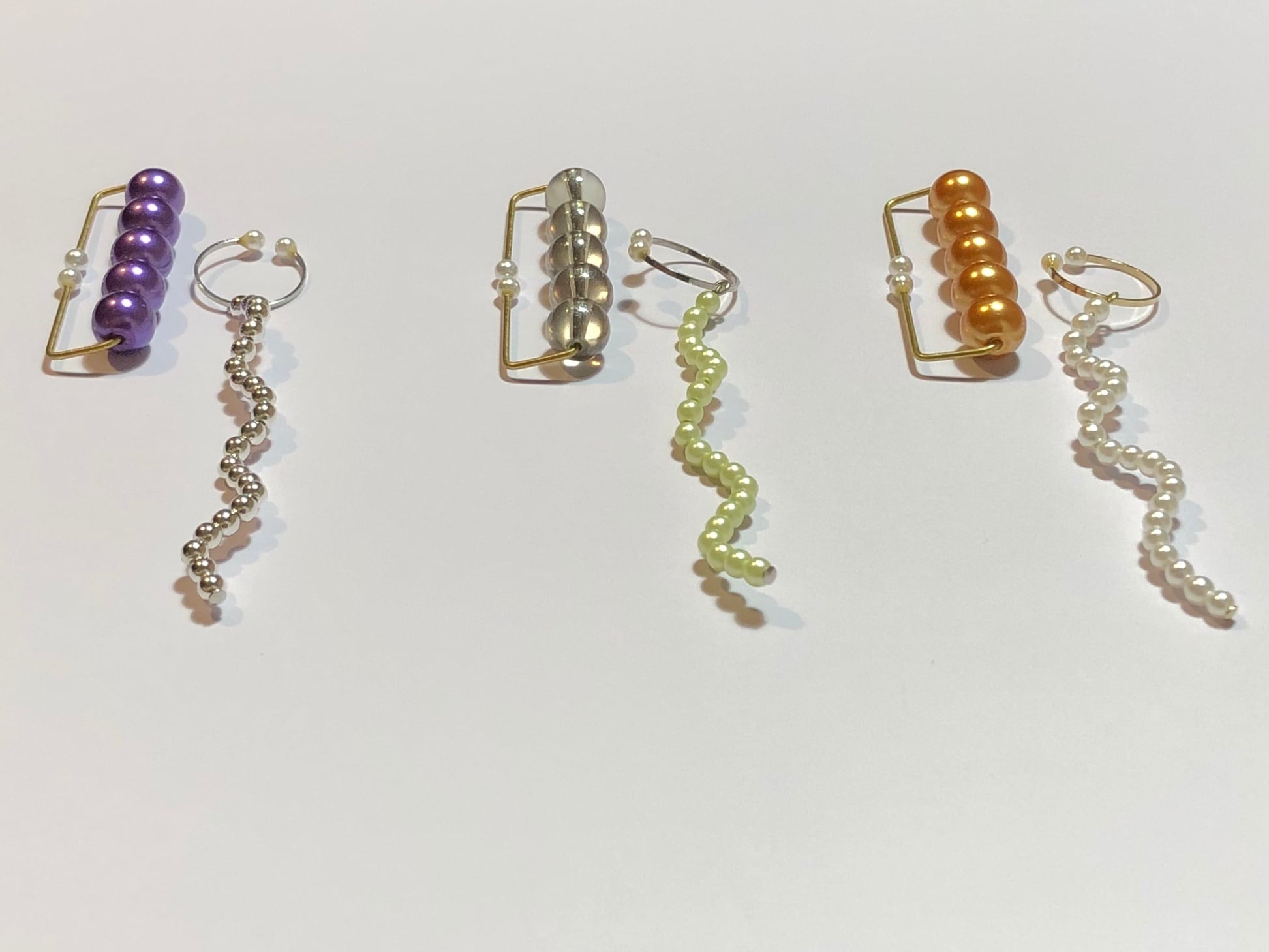 重ね付けしていただいたり、左右に、ときには1点ずつ使ったりと、色々楽しめます。