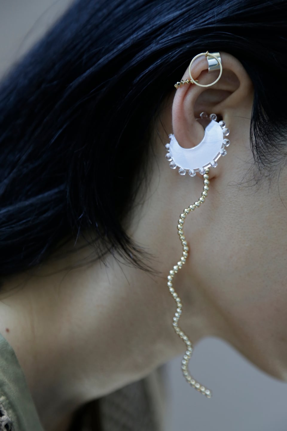 透明感の美しいアクリルのイヤーカフです。