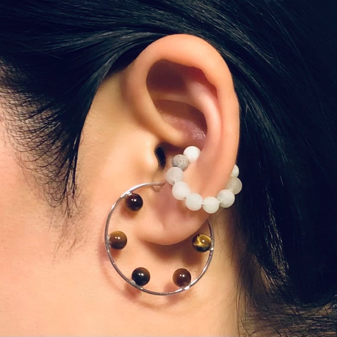 ※こちらのイヤーカフは、金属にバネの性質がありません。広げすぎず、痛みが出ないところまでしっかりと閉じてお使い下さい。