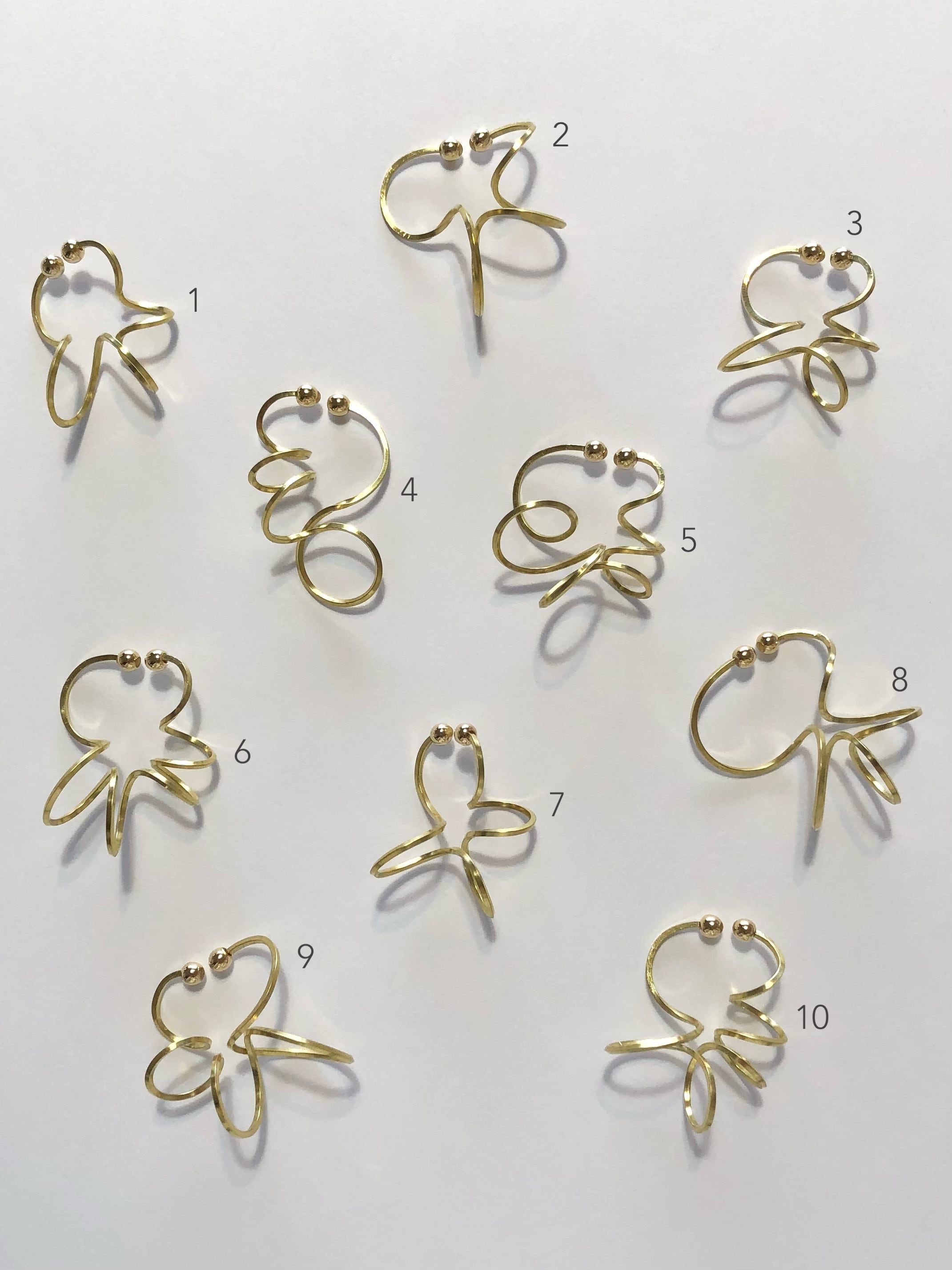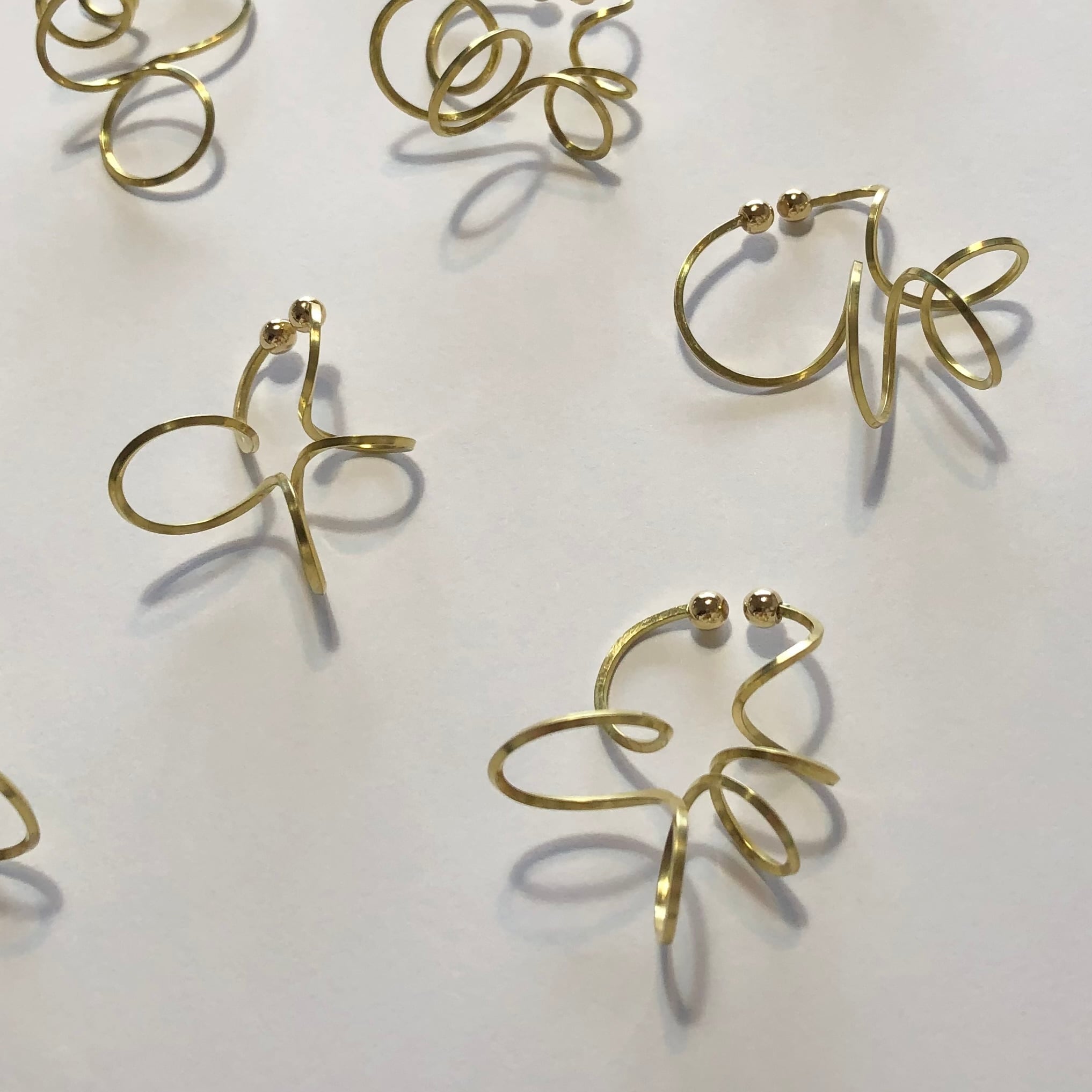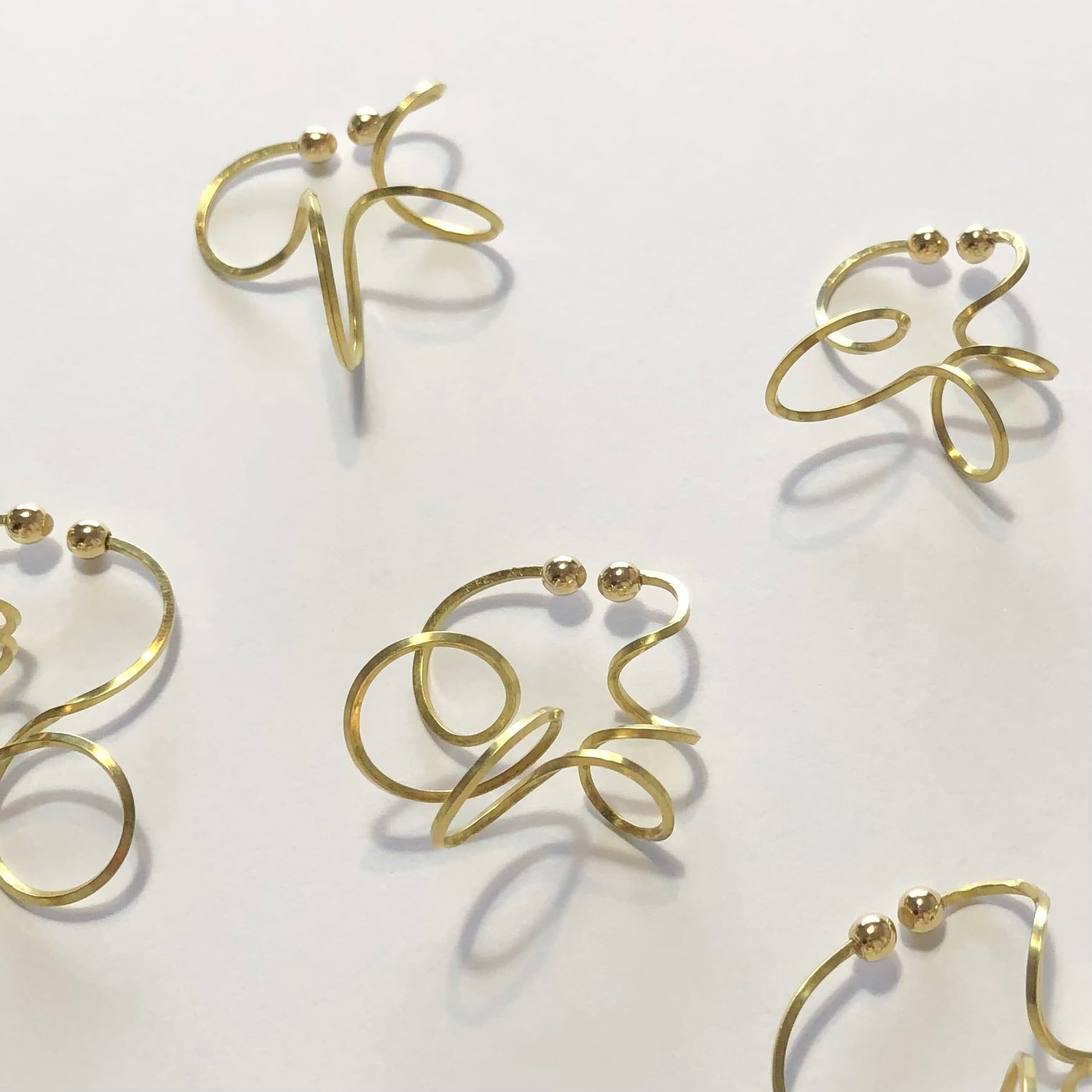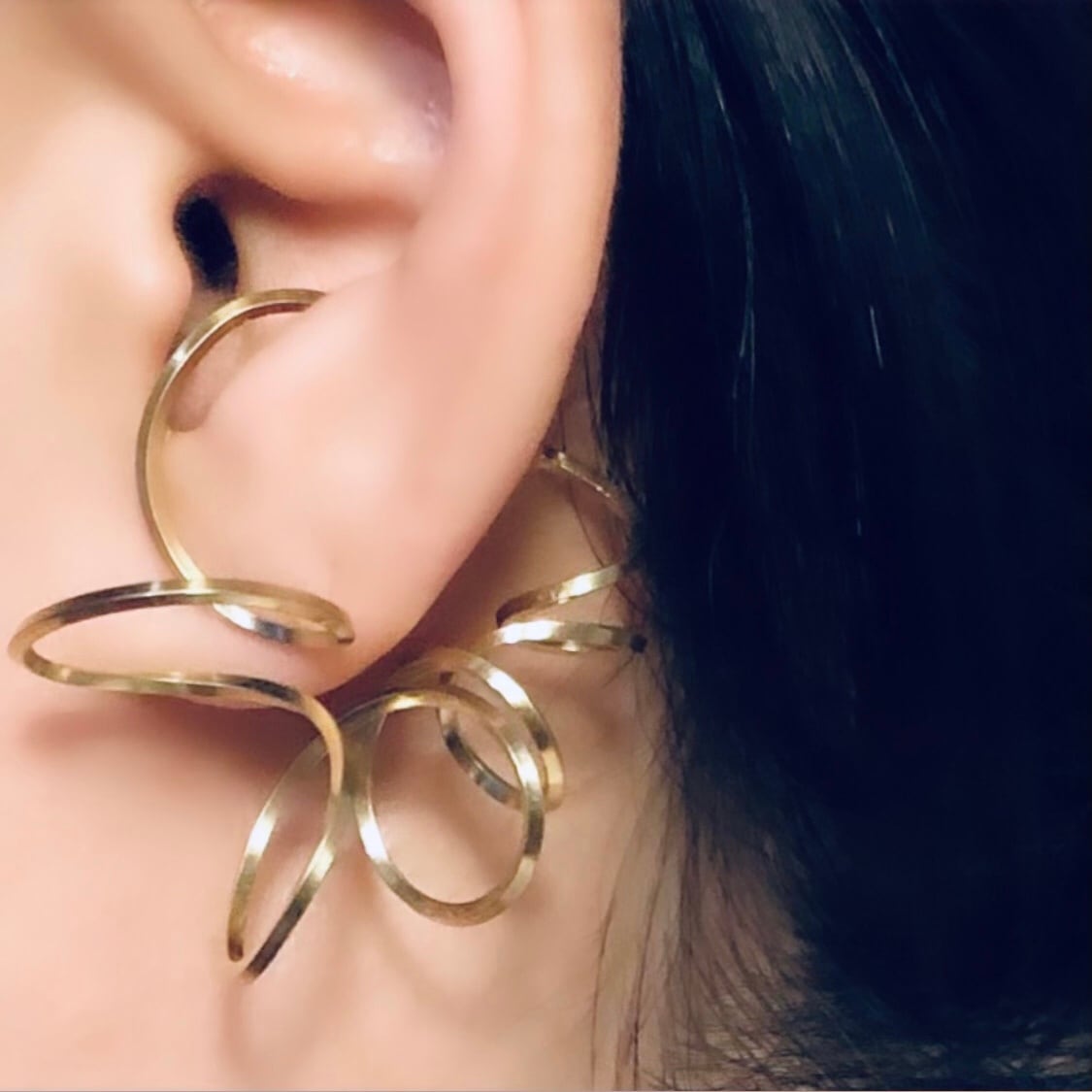 くるくるとお耳に巻きつくようなデザインのイヤーカフです。