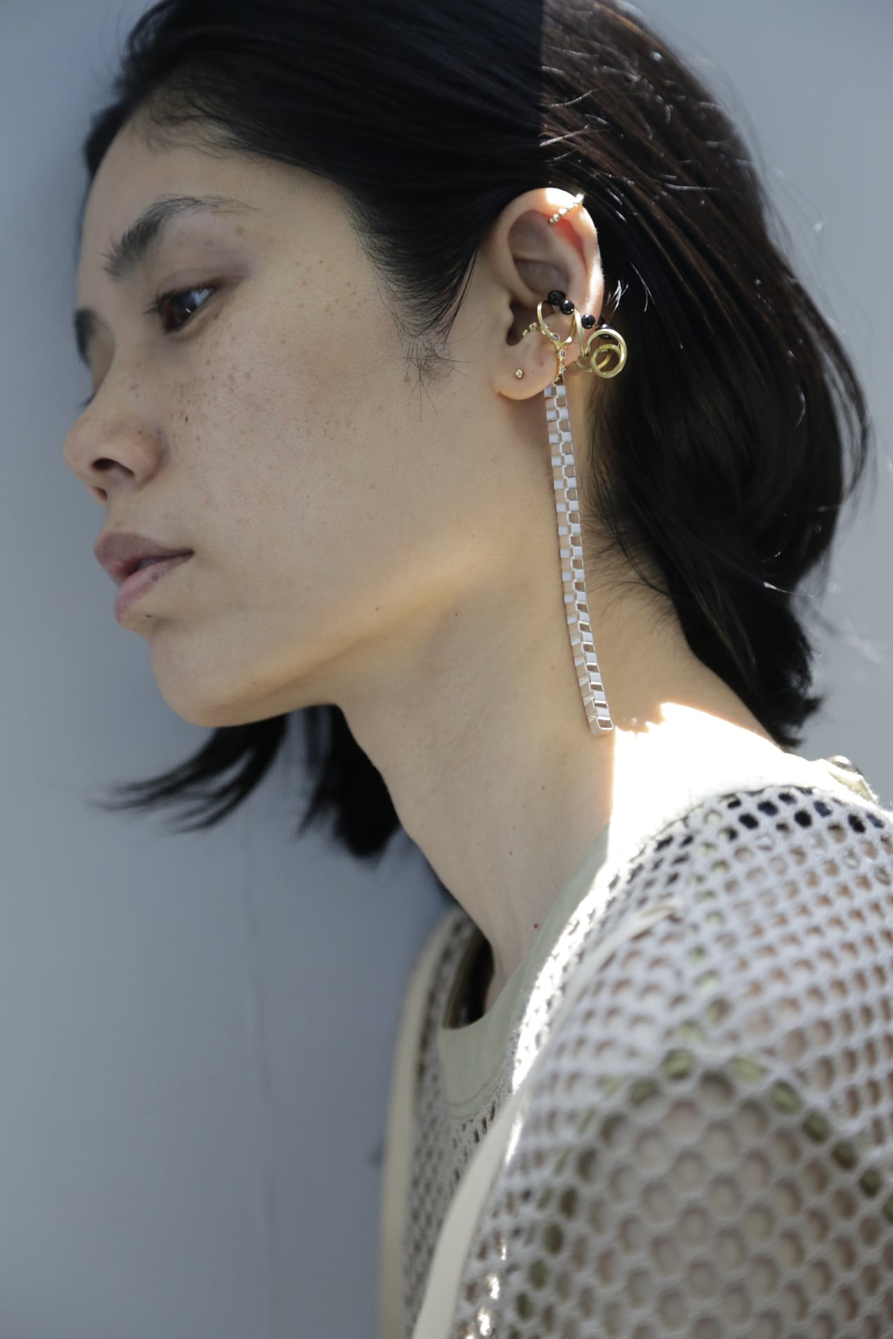 ひとつでも、小さなイヤーカフやピアスとの重ね付けもおすすめ。
