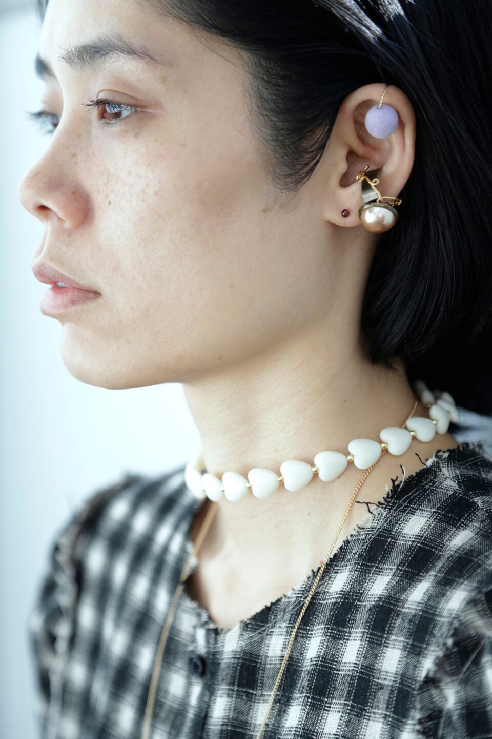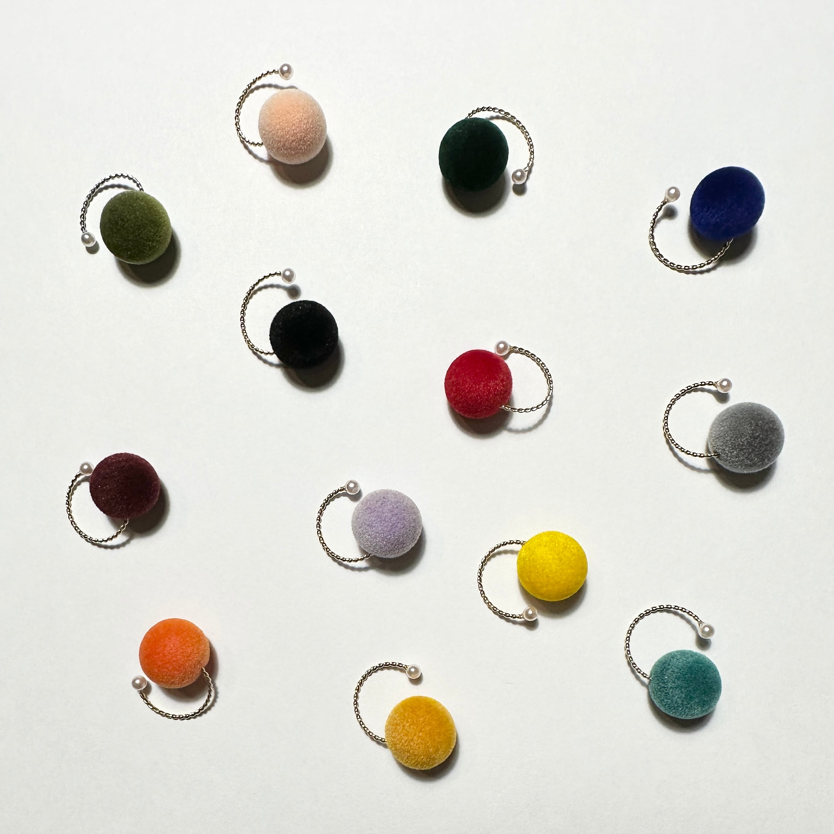 素材 アクリル(フロッキー加工)、真鍮+メッキ(イヤーカフ)、樹脂パール