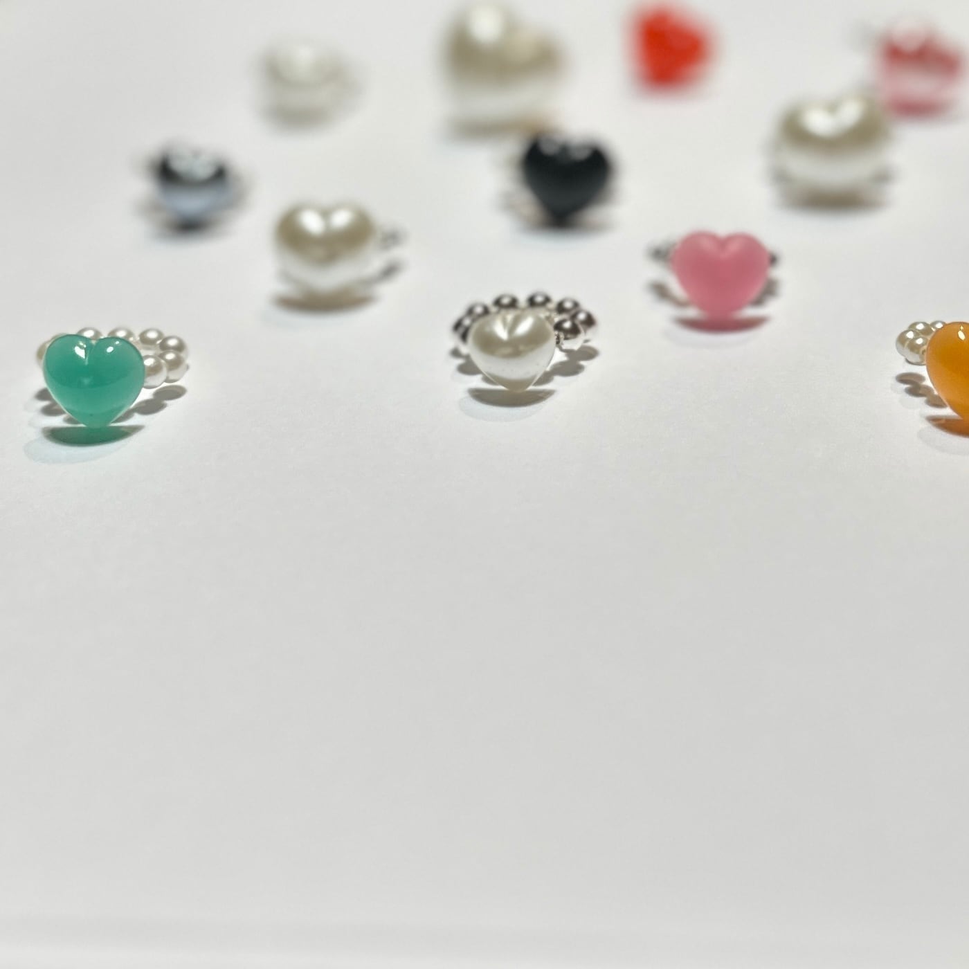 大きさ ベースのイヤーカフ約1.2cm、パールの大きさ約3mm〜約4mm、ハートの大きさ約1.2cm〜約1.6cm