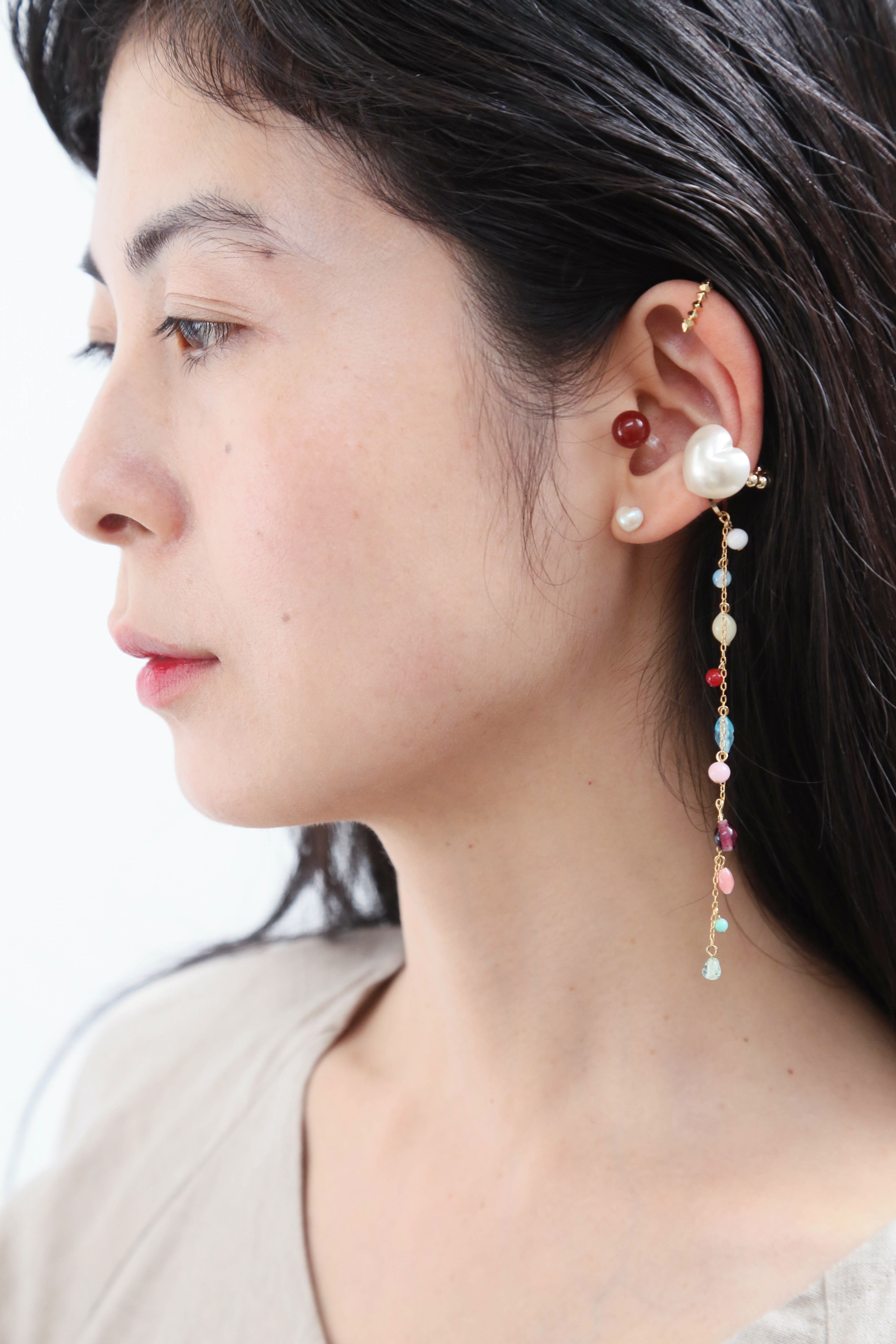 pearl mix heart ear cuff