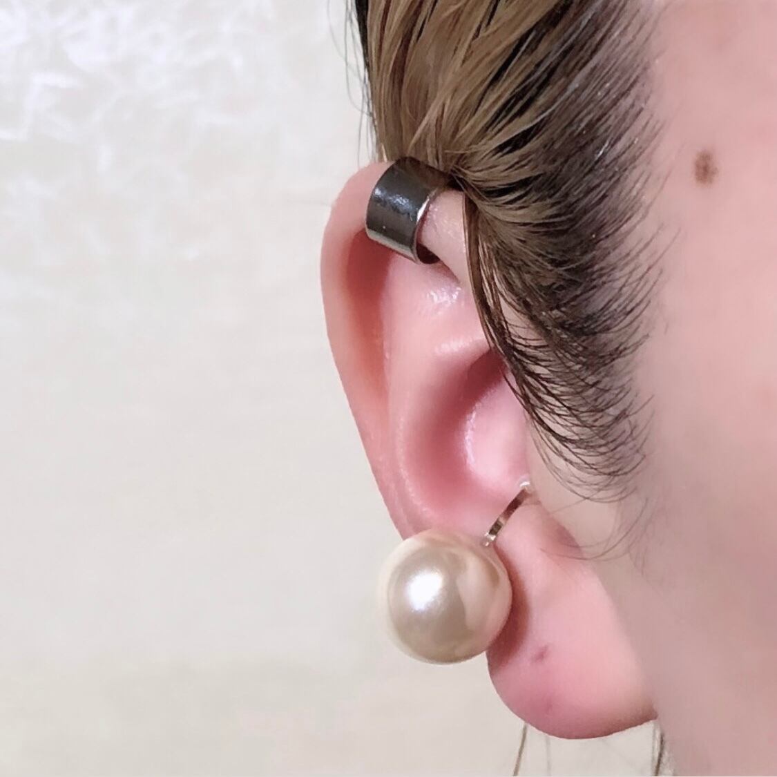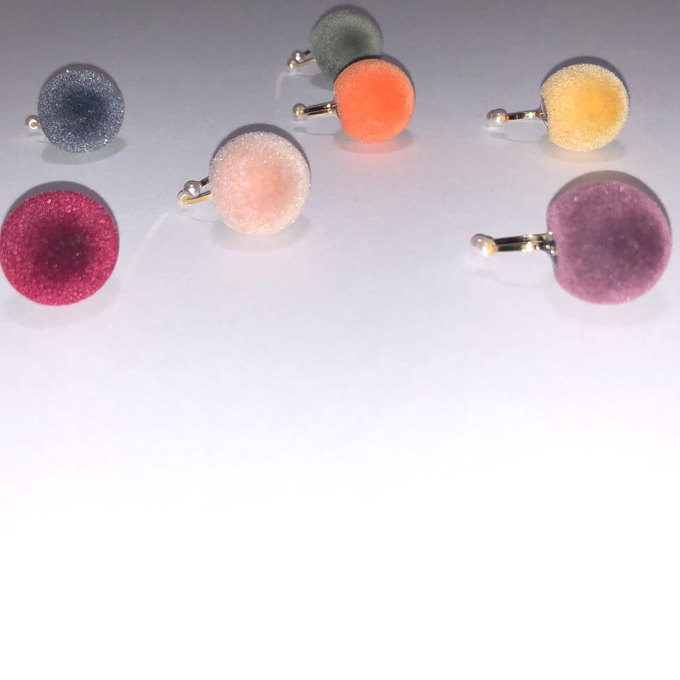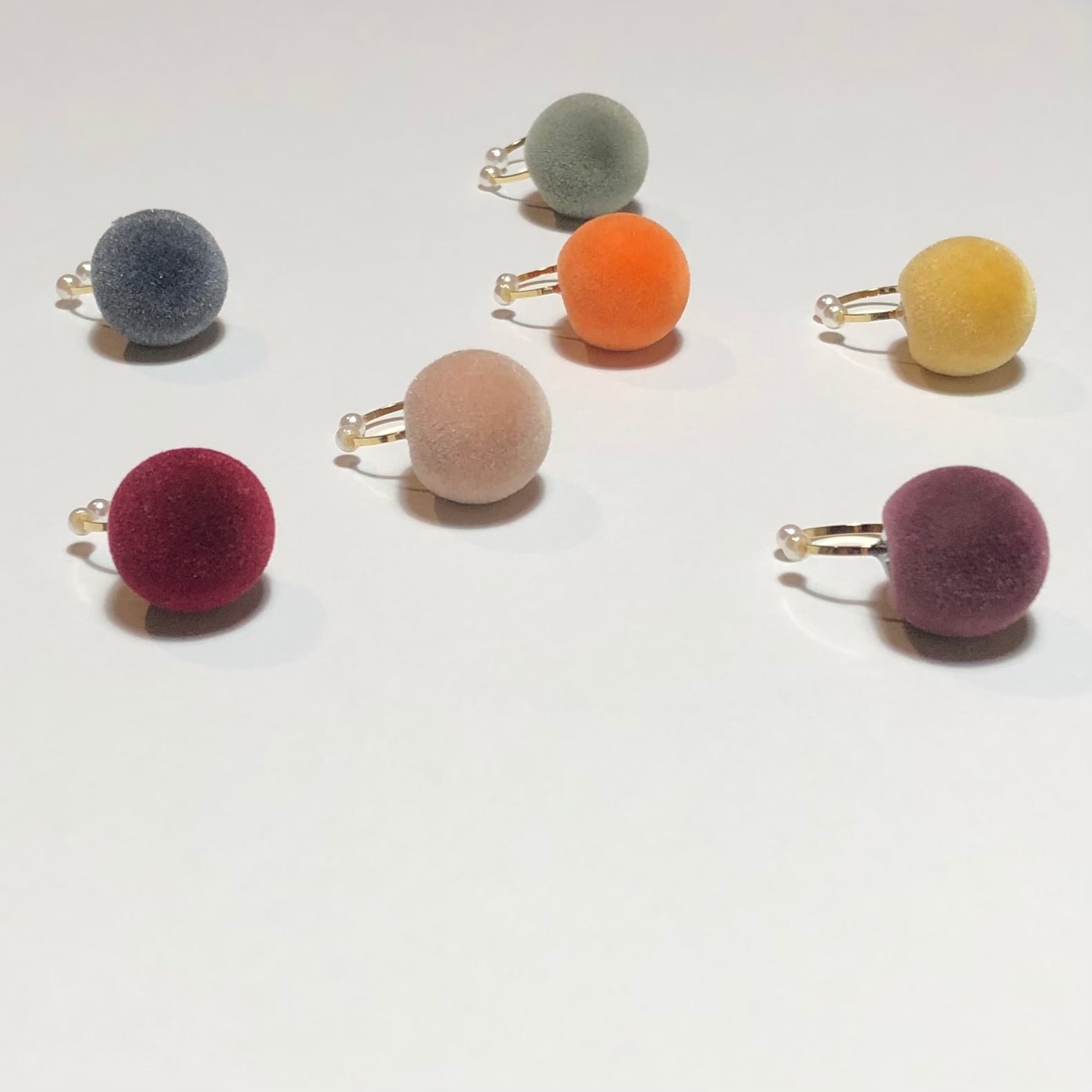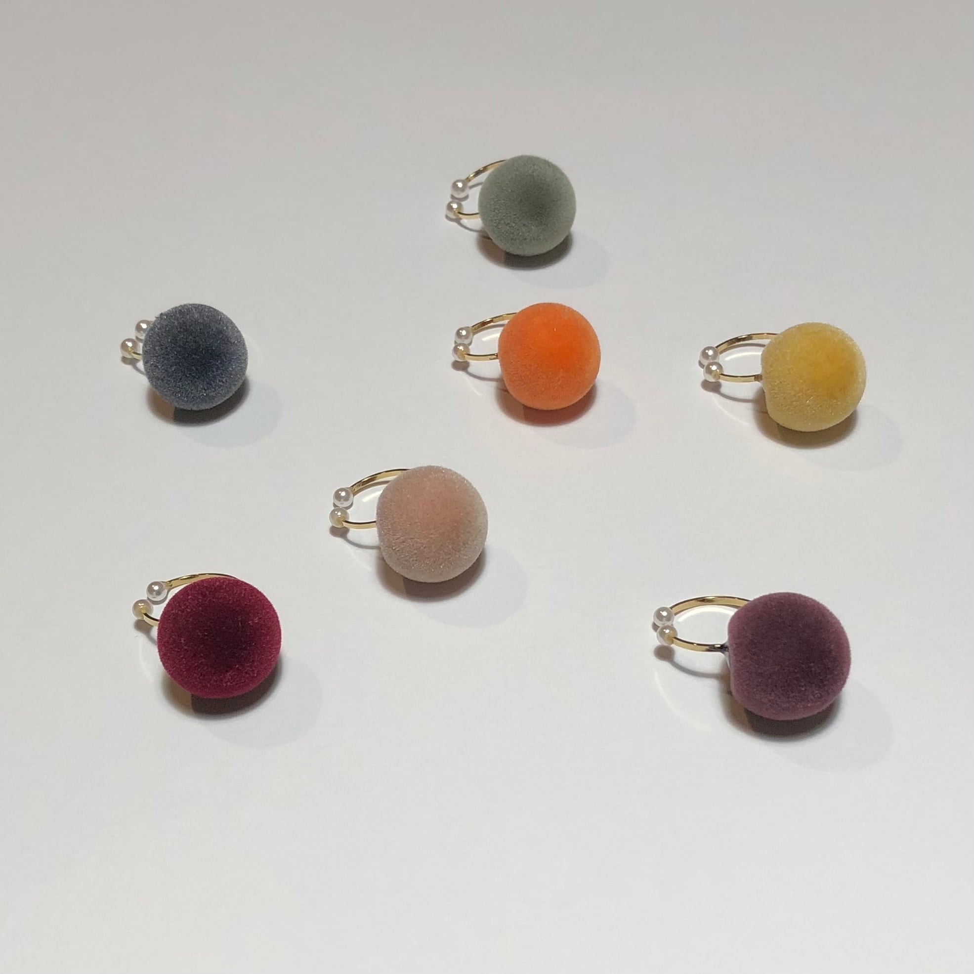 素材 アクリルビーズ(フロッキー加工)、真鍮+メッキ(イヤーカフ)、樹脂パール