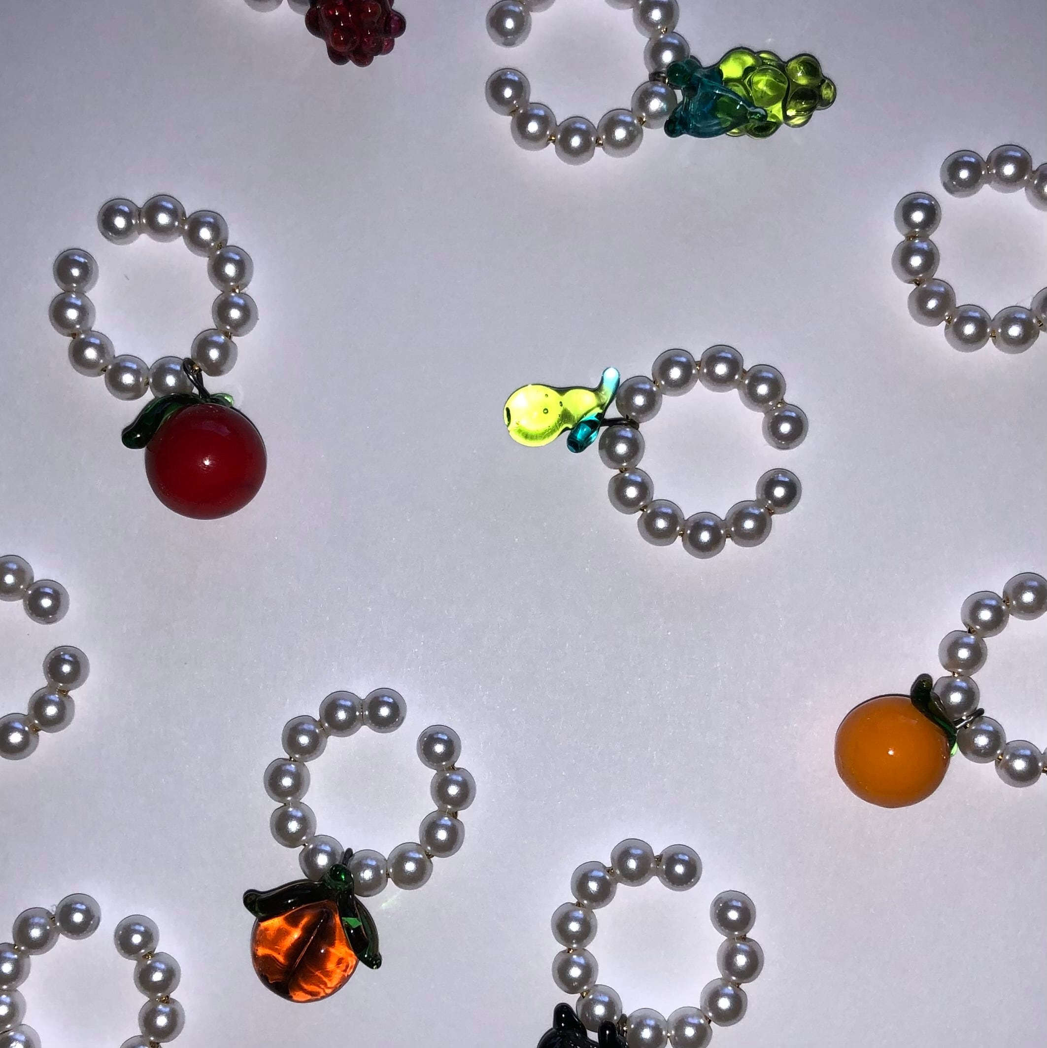 大きさ イヤーカフ約1.8mm、パール約4mm、フルーツ約1cm〜約1.5cm