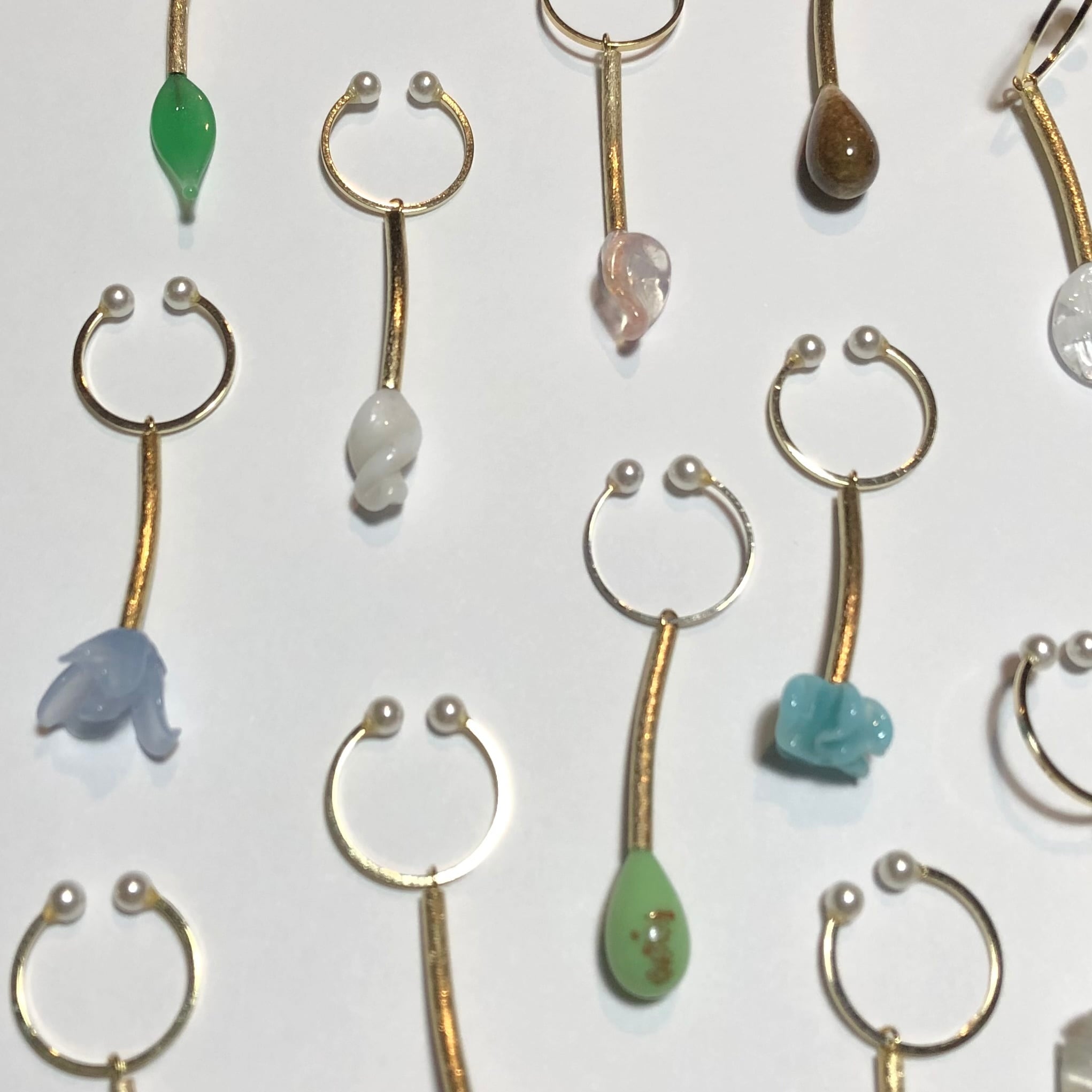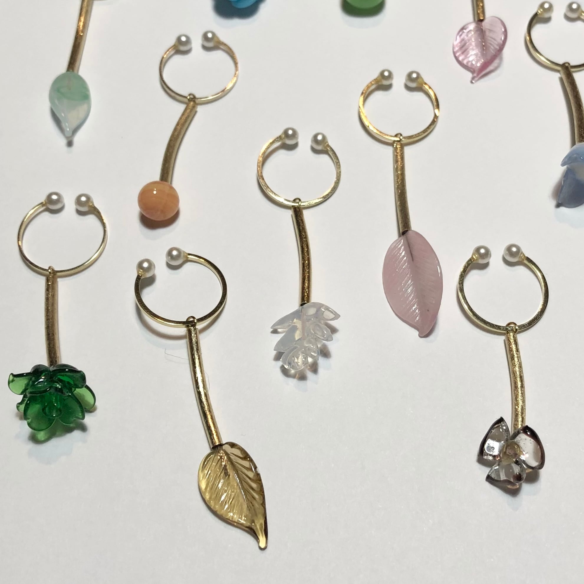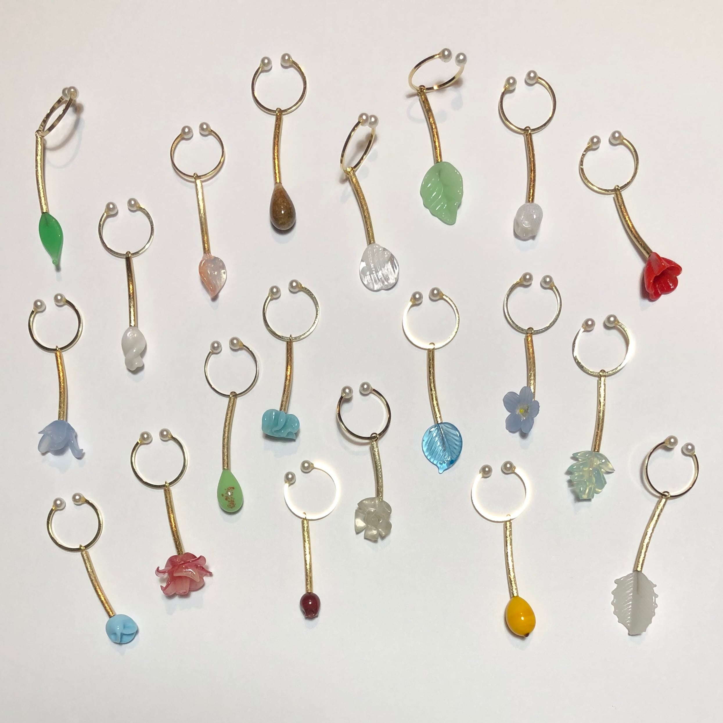 ジャパンヴィンテージ、フランスヴィンテージのガラスパーツがゆらゆら揺れるイヤーカフです。