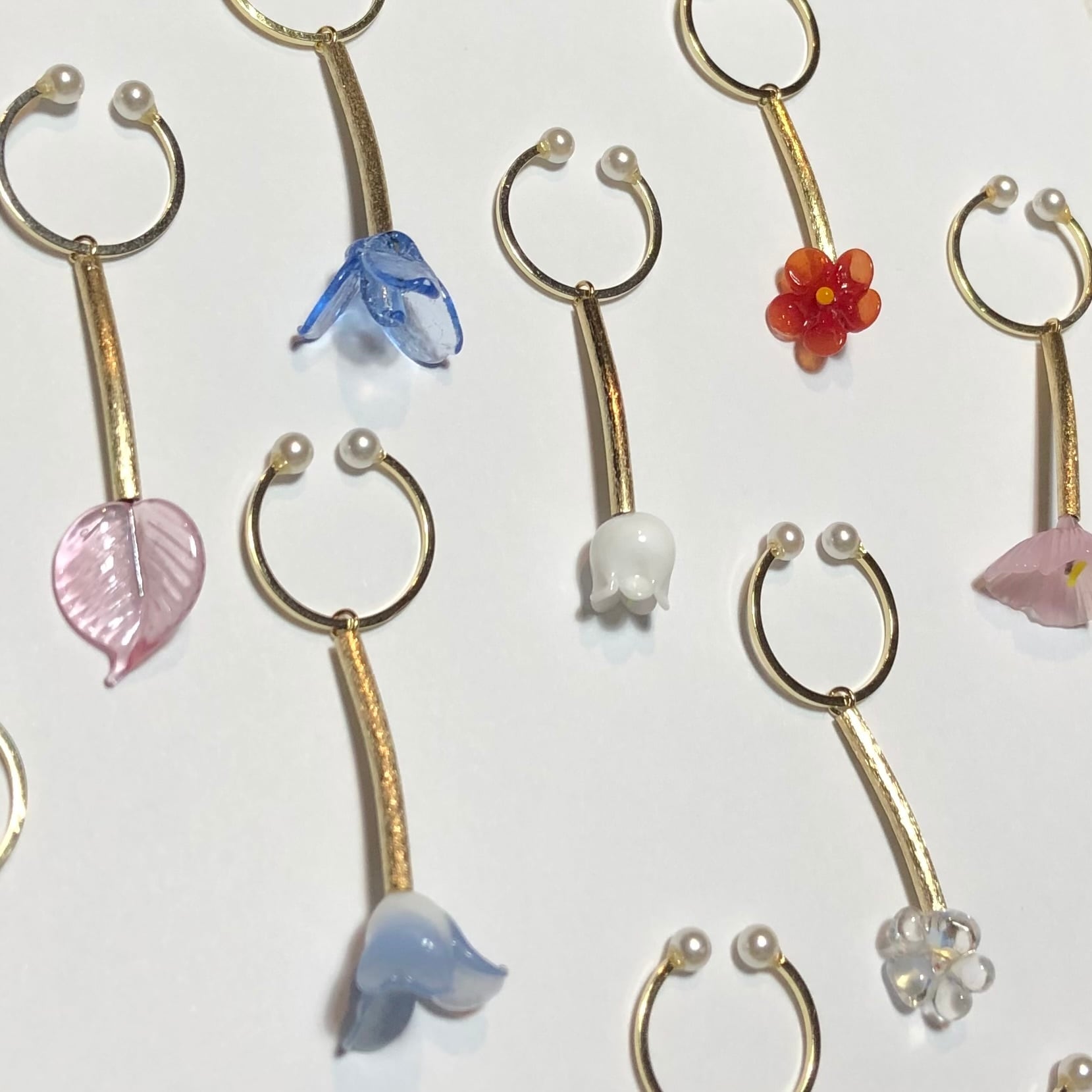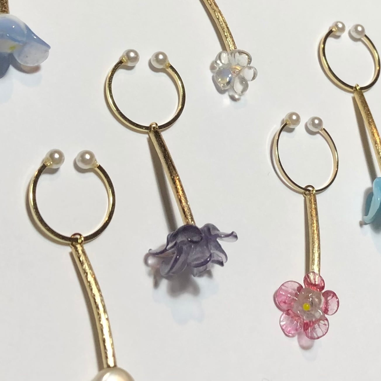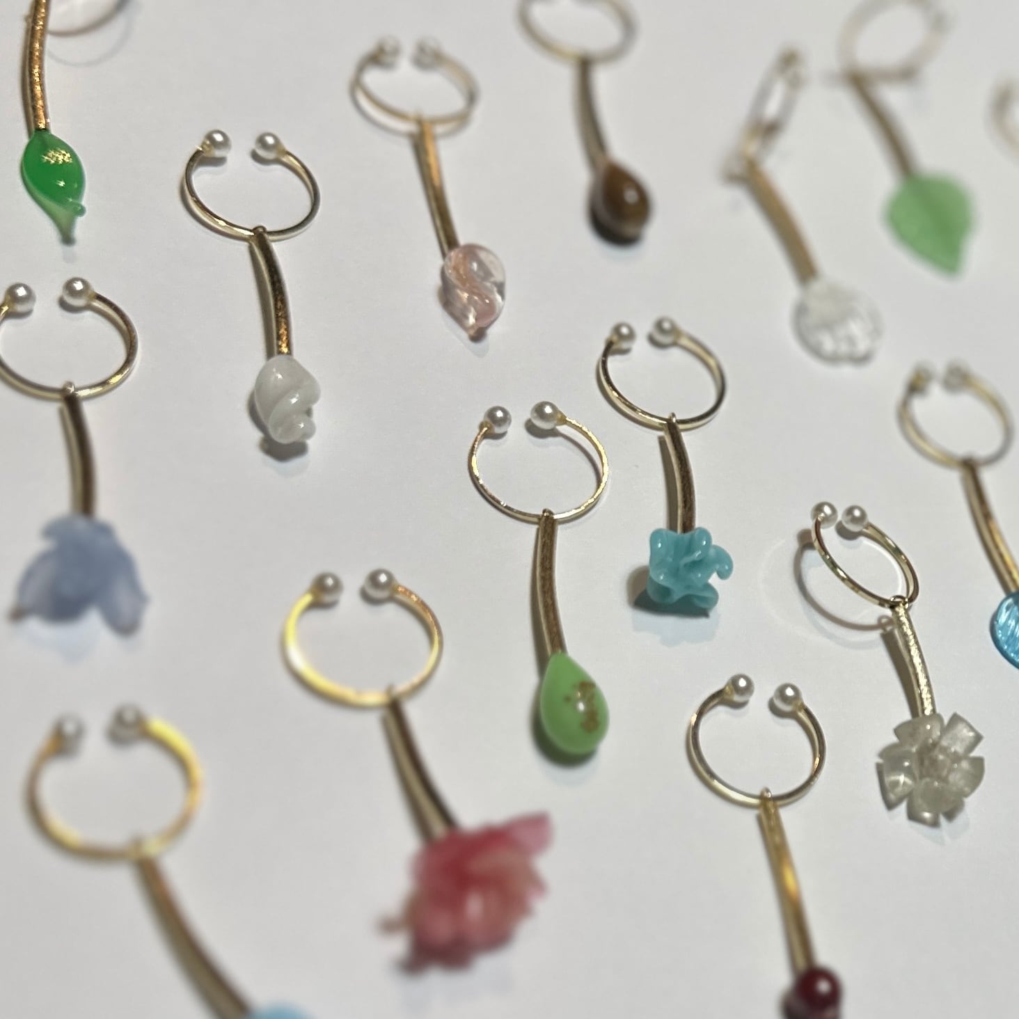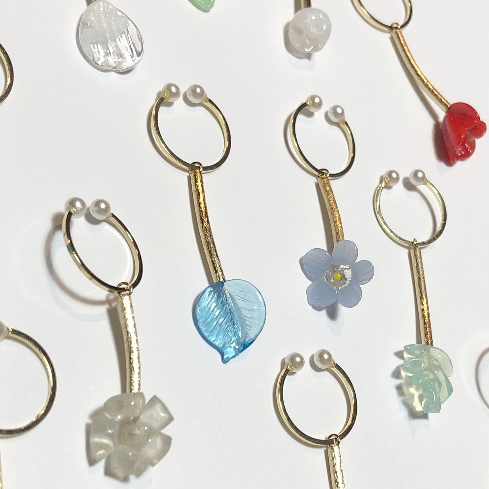 ジャパンヴィンテージ、フランスヴィンテージのガラスパーツがゆらゆら揺れるイヤーカフです。