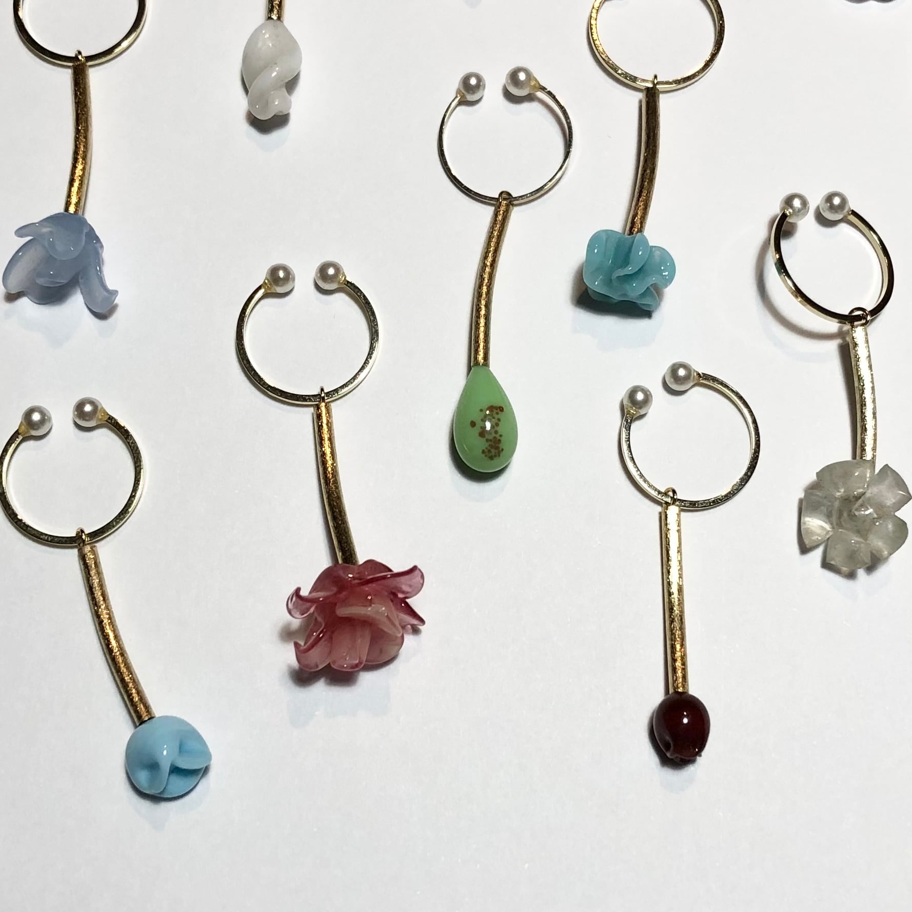 大きさ パイプの長さ約2cm、ガラスのモチーフ約7mm〜約2cm