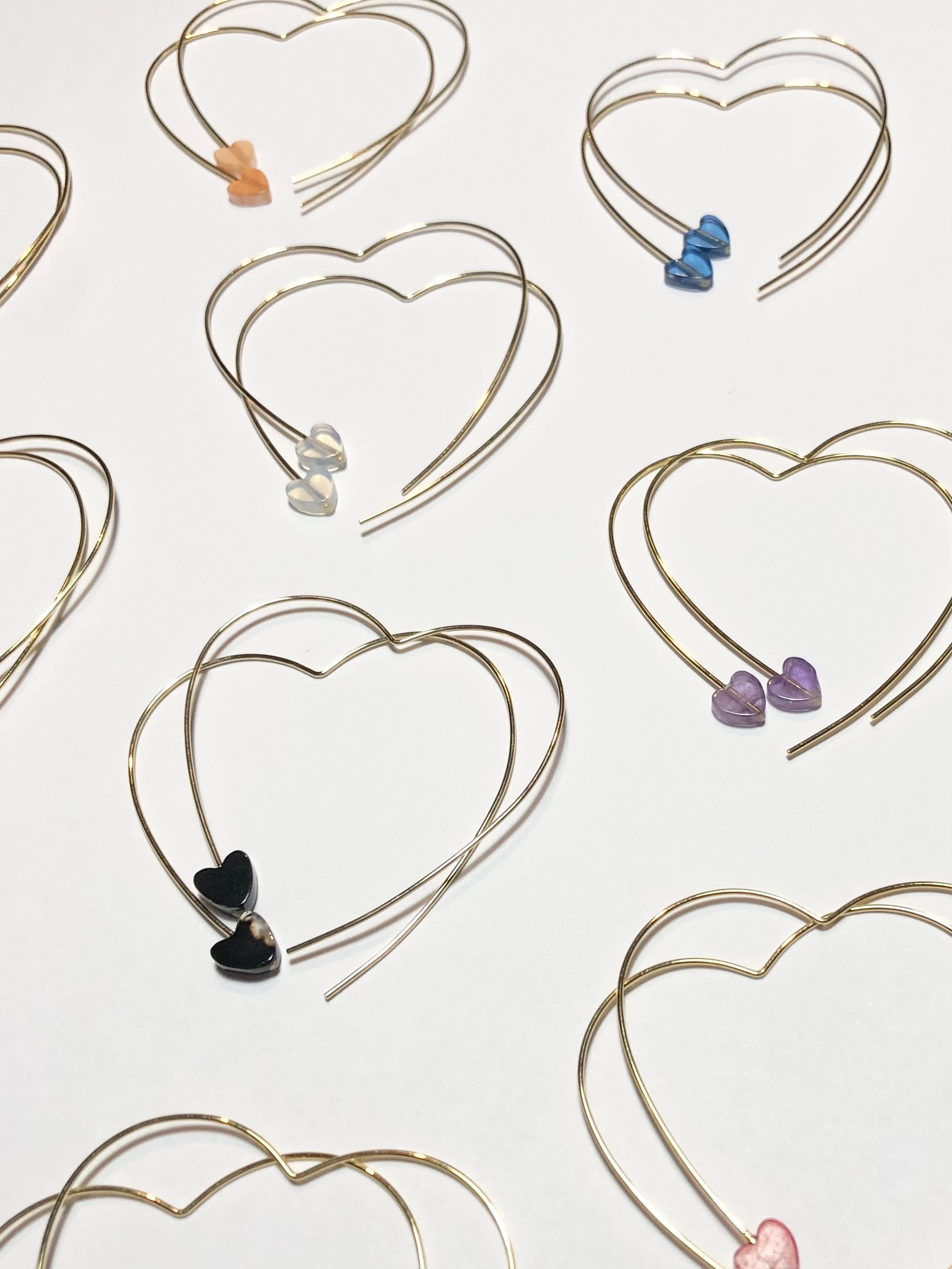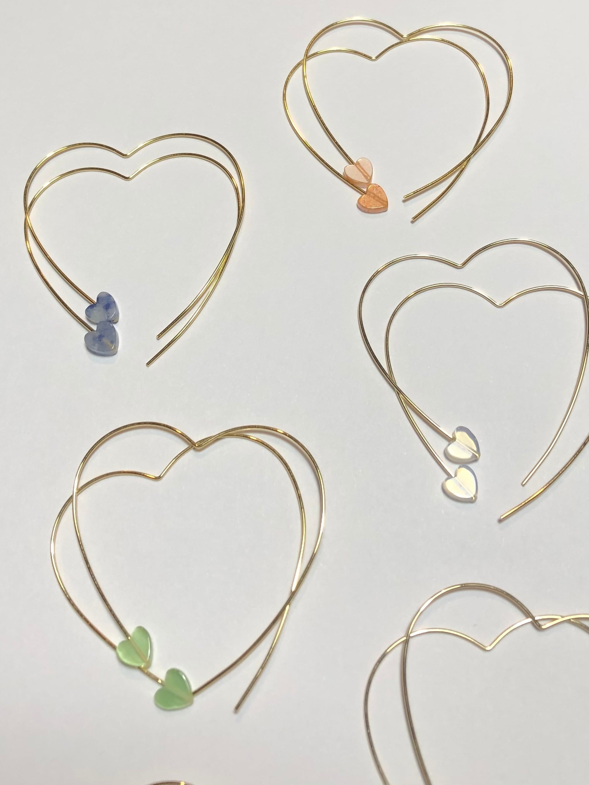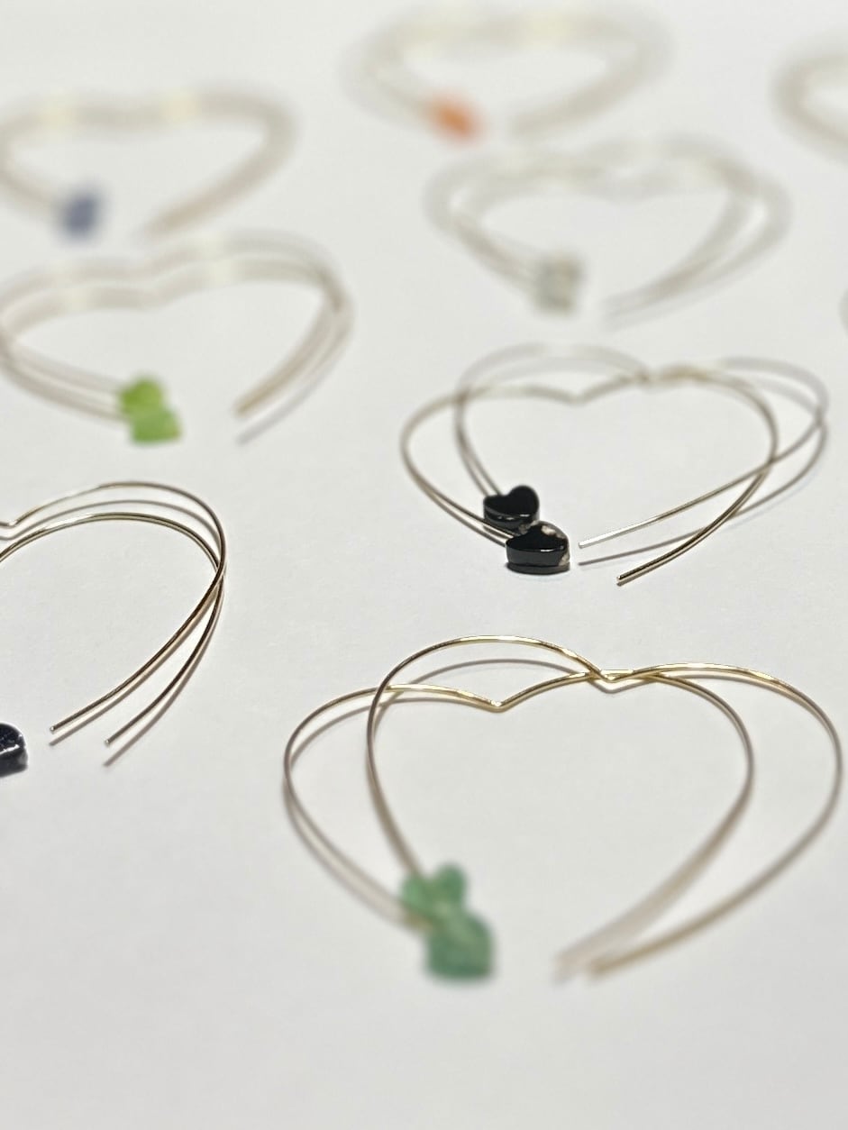 大きさ フープピアスの大きさ約4.5cm×約3.5cm、真鍮のハートのビーズ約5mm×4mm、天然石は全て約6mm