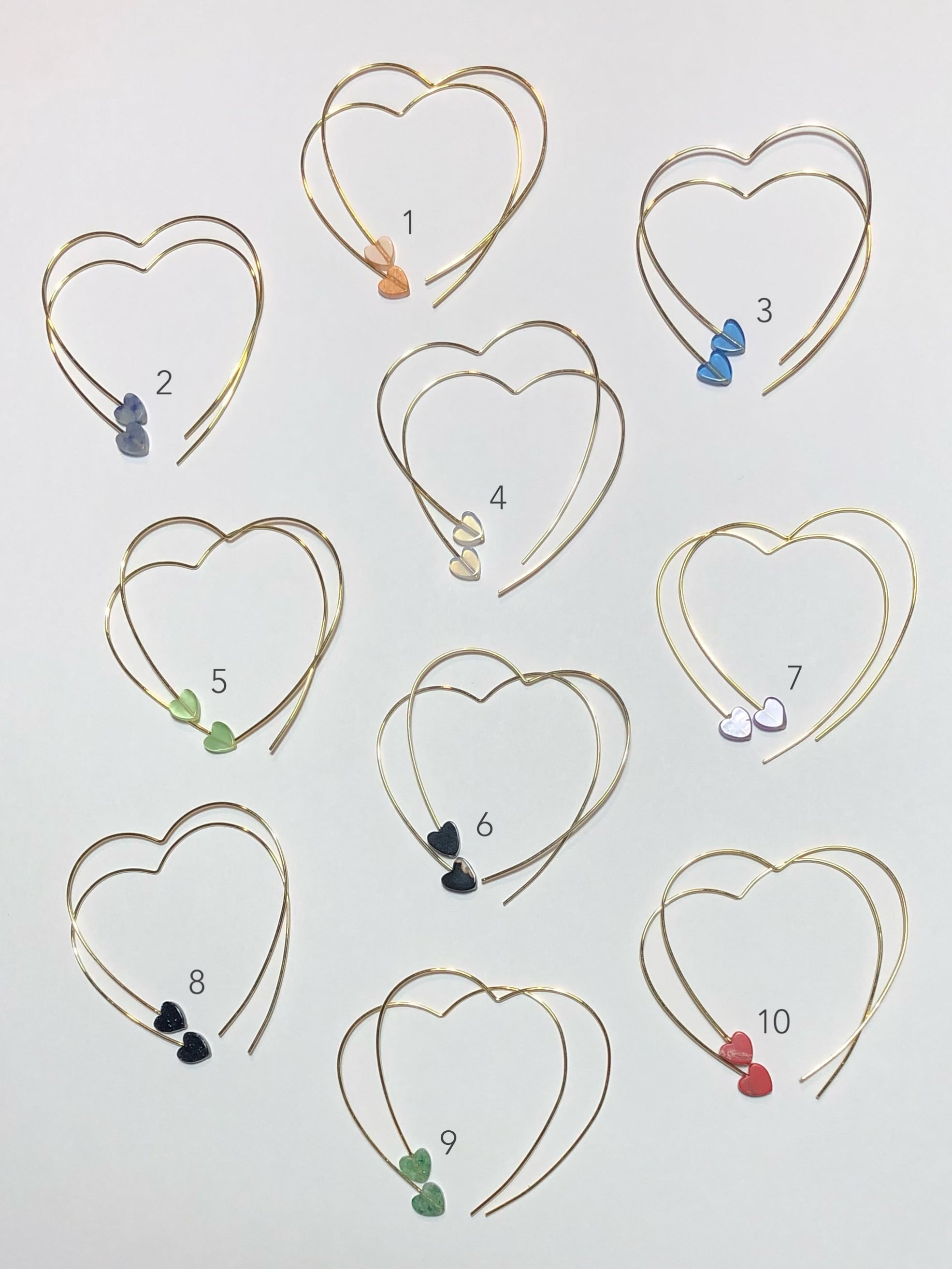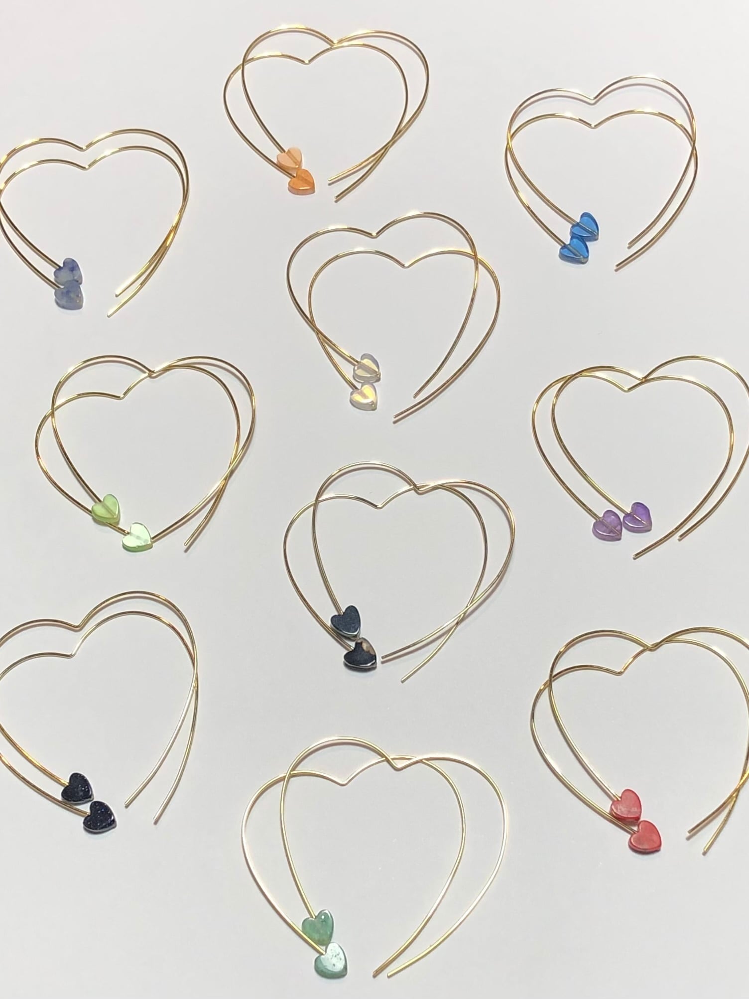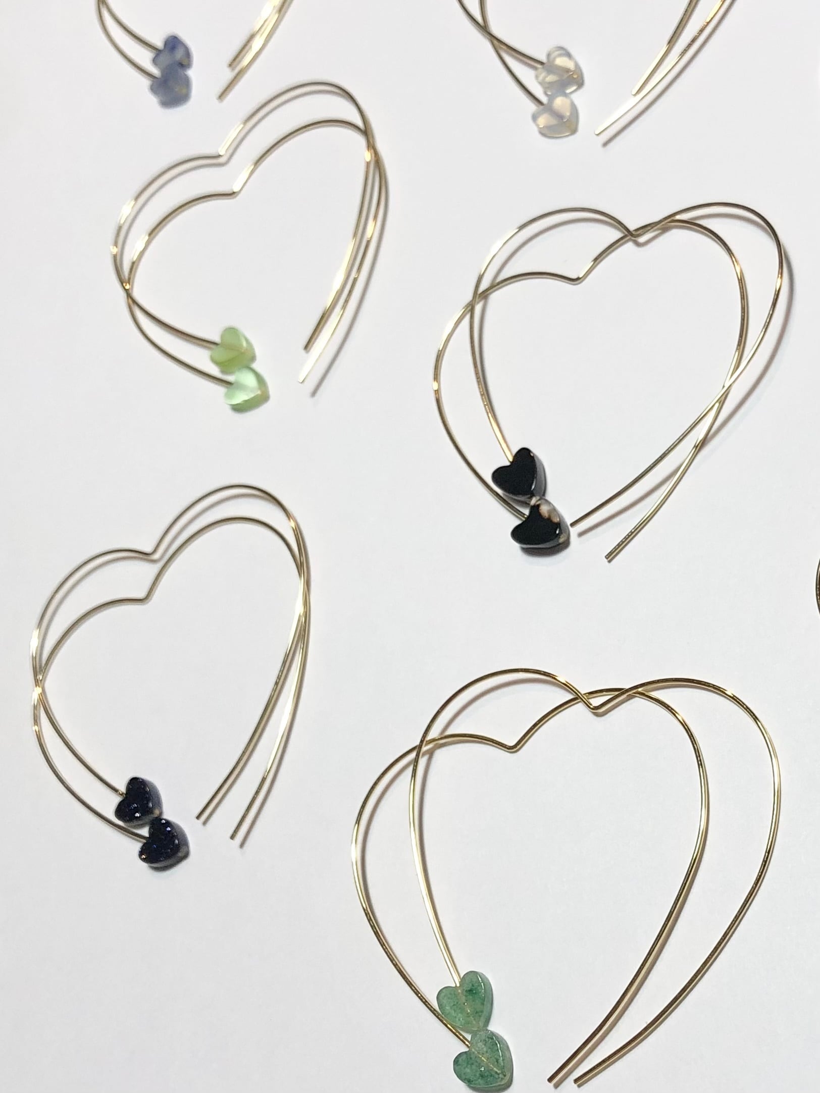 大きさ フープピアスの大きさ約4.5cm×約3.5cm、真鍮のハートのビーズ約5mm×4mm、天然石は全て約6mm