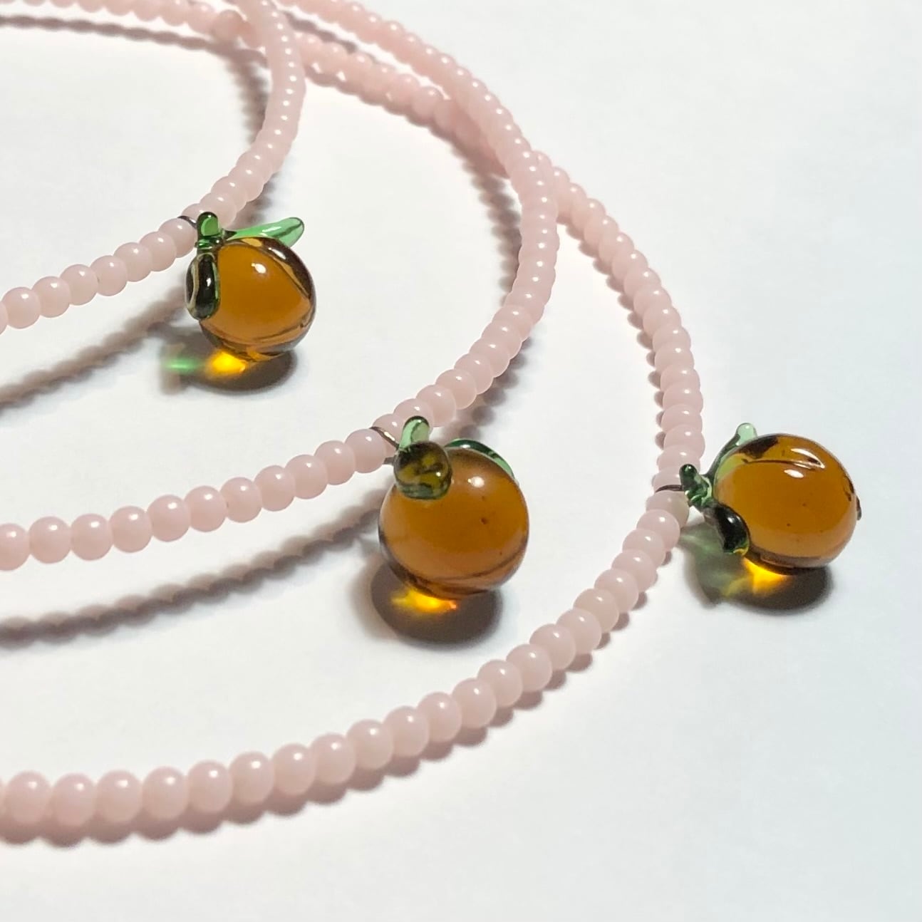 ジャパンヴィンテージのパールにチェコのヴィンテージガラスの桃を合わせたチョーカーです。