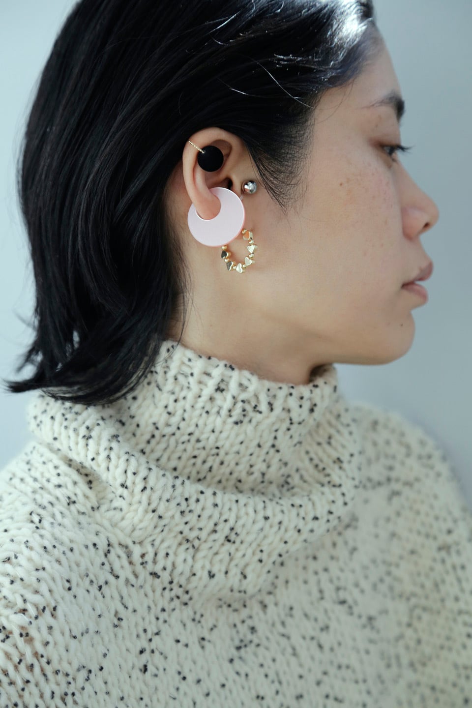 耳たぶにも着けられます。