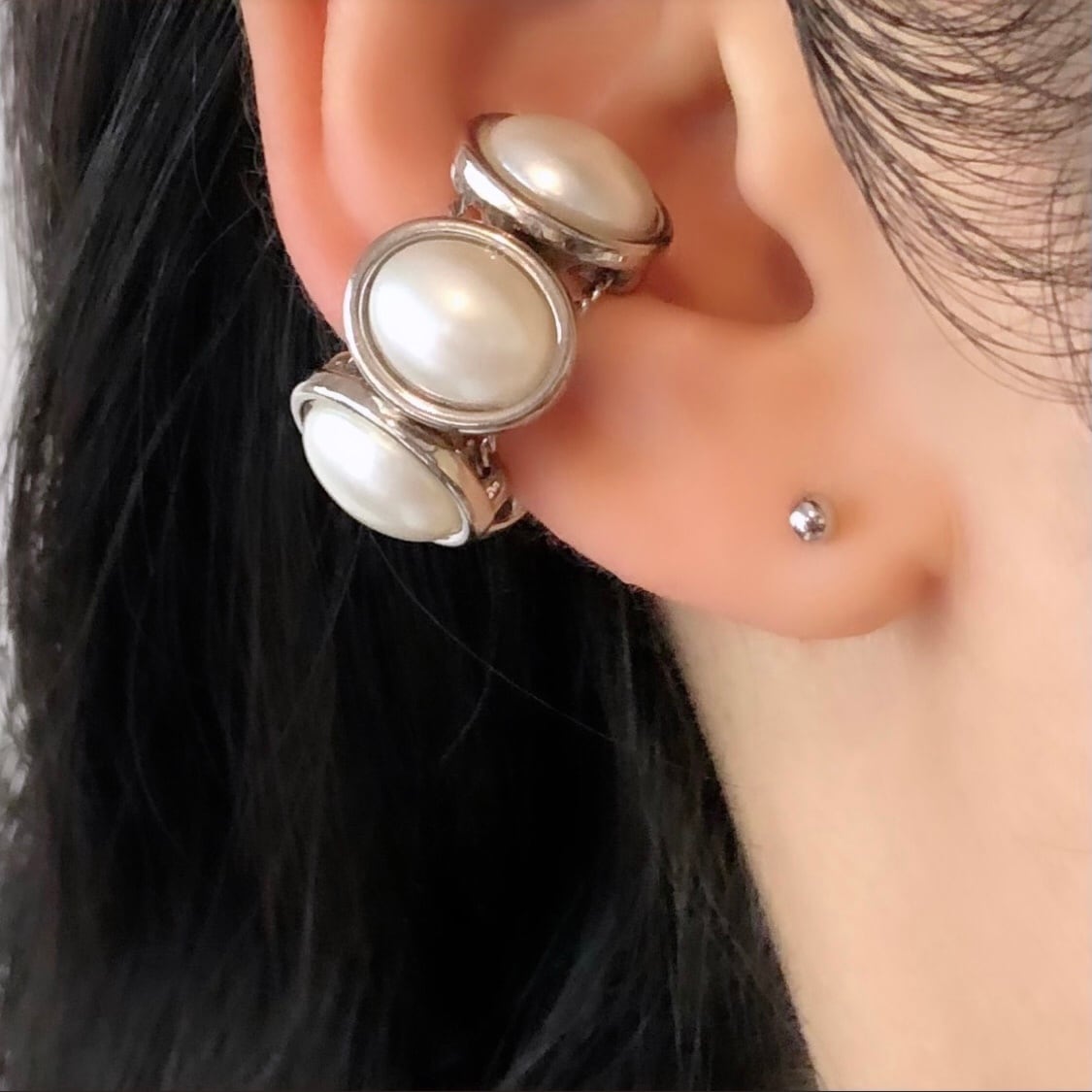 ビジューがポイントになるイヤーカフです。