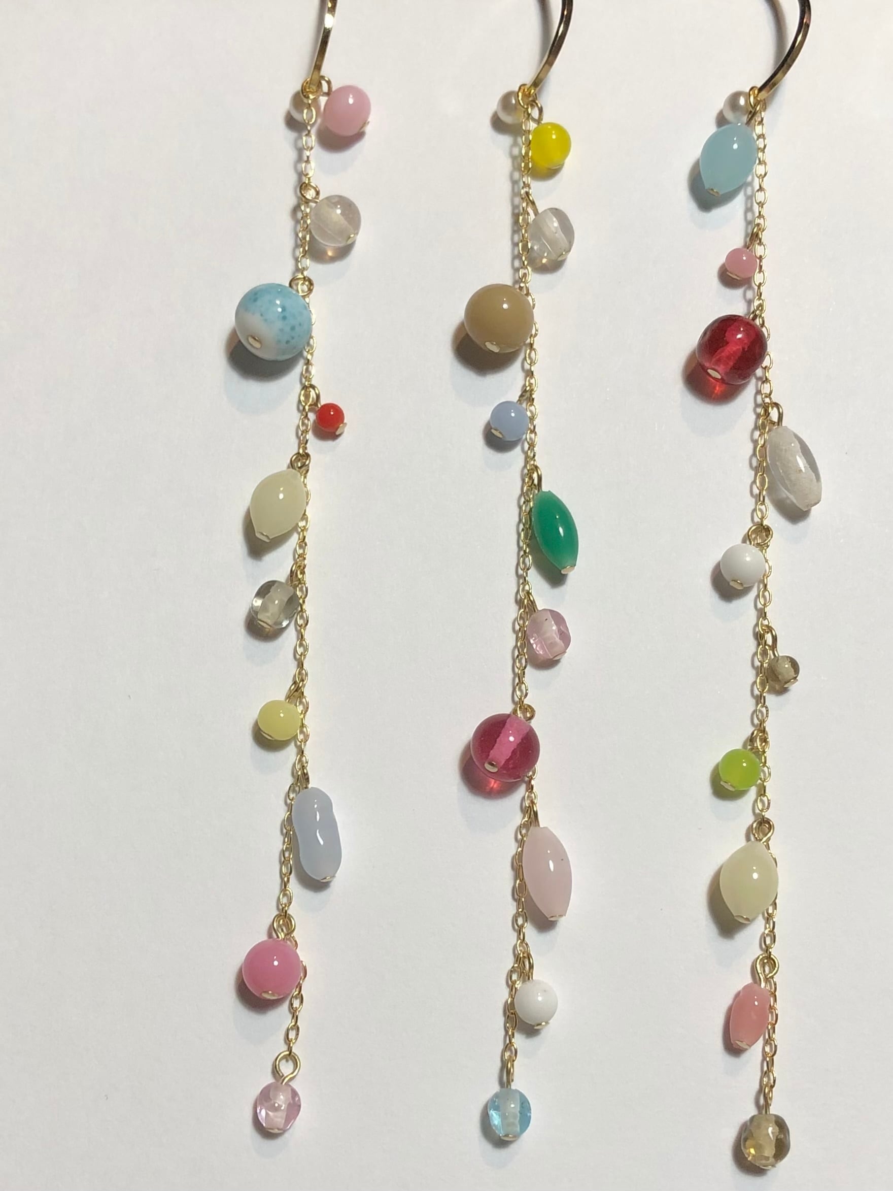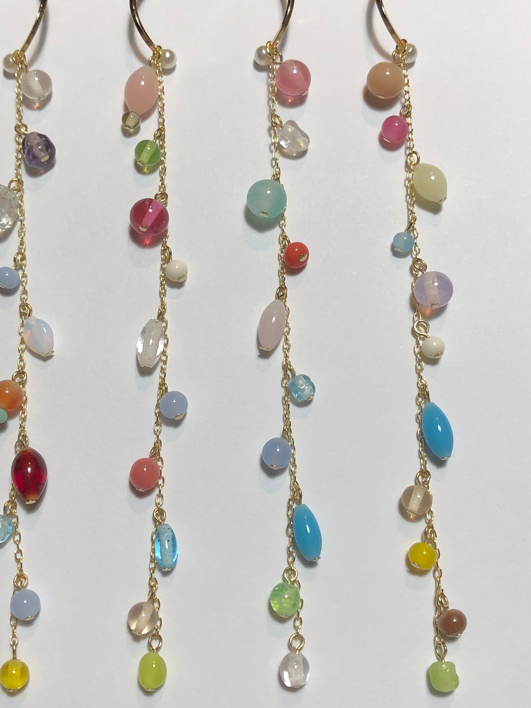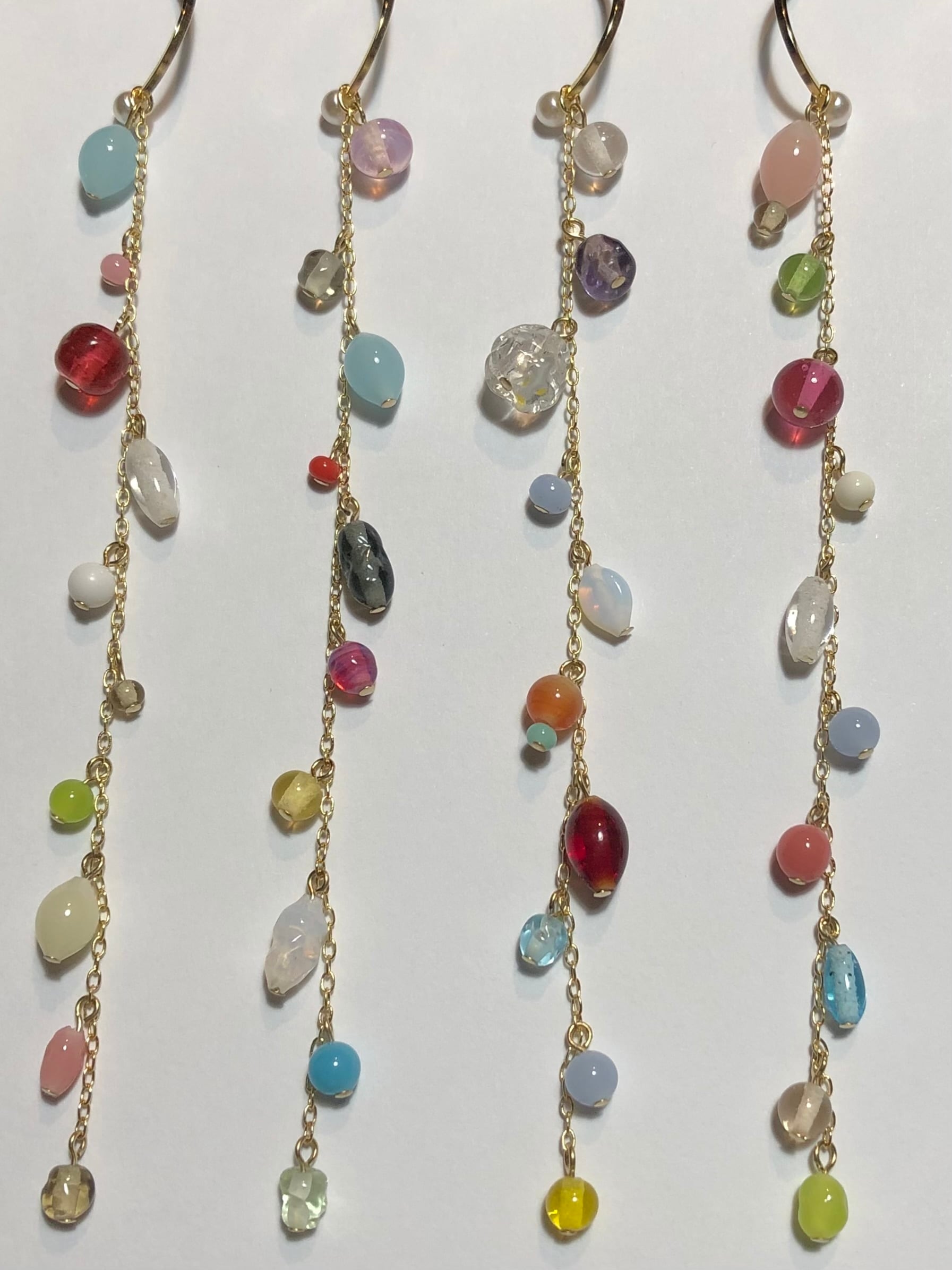 ジャパンヴィンテージのカラフルなガラスをあしらったイヤーカフです。