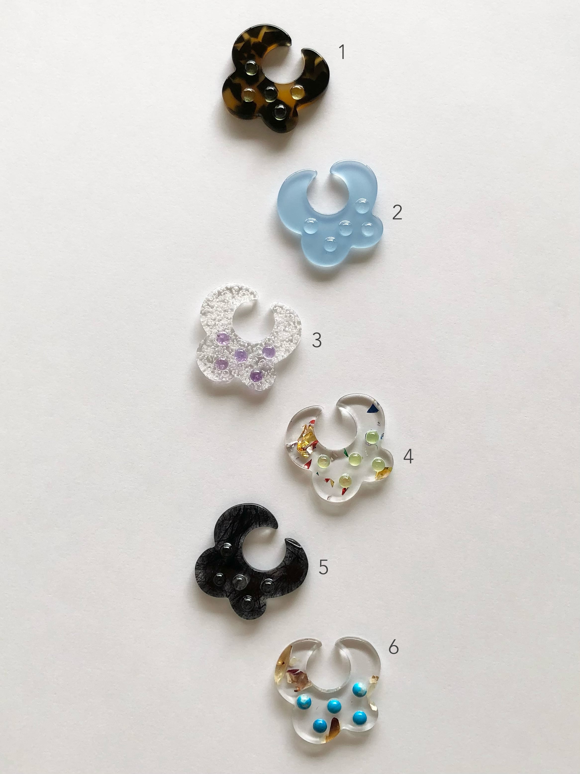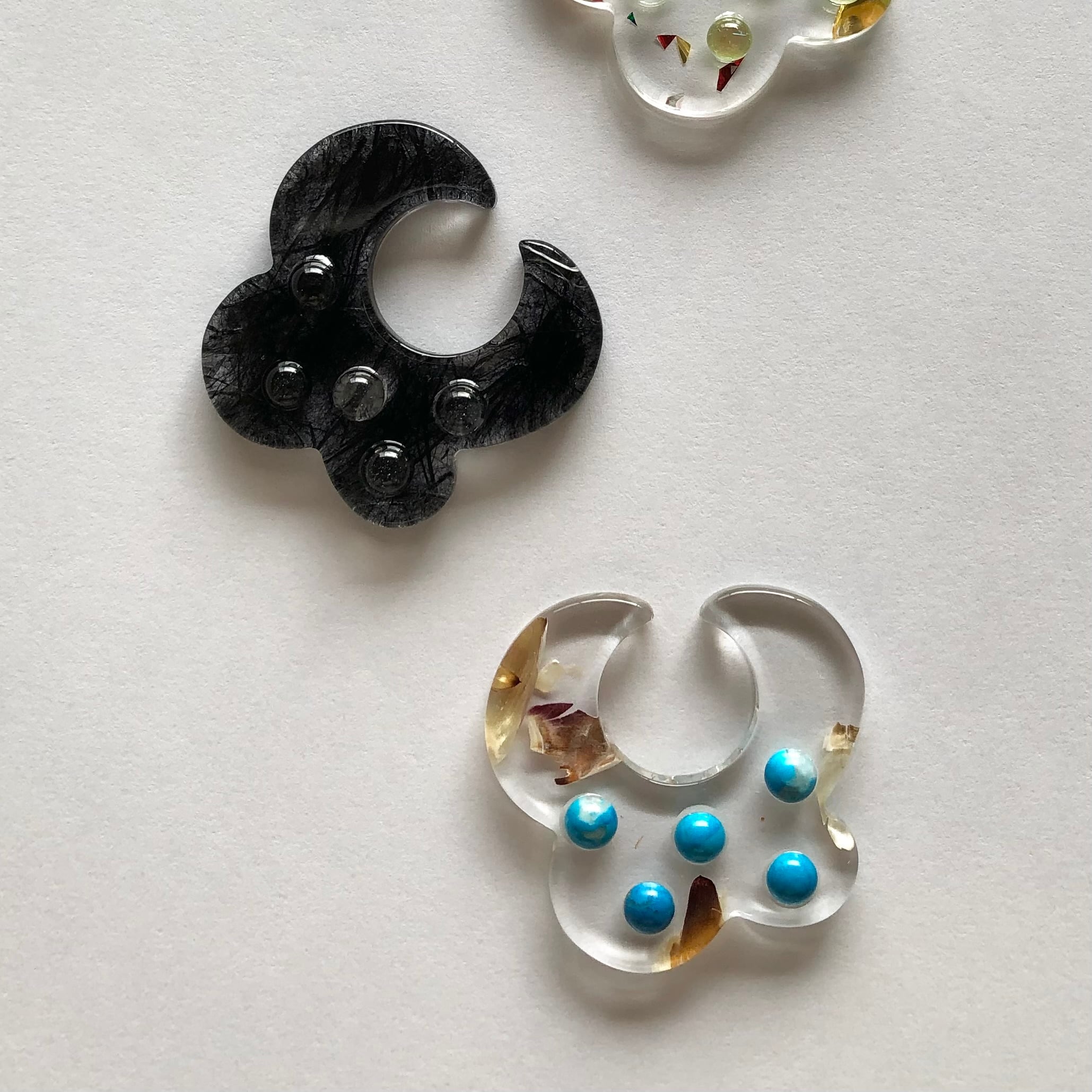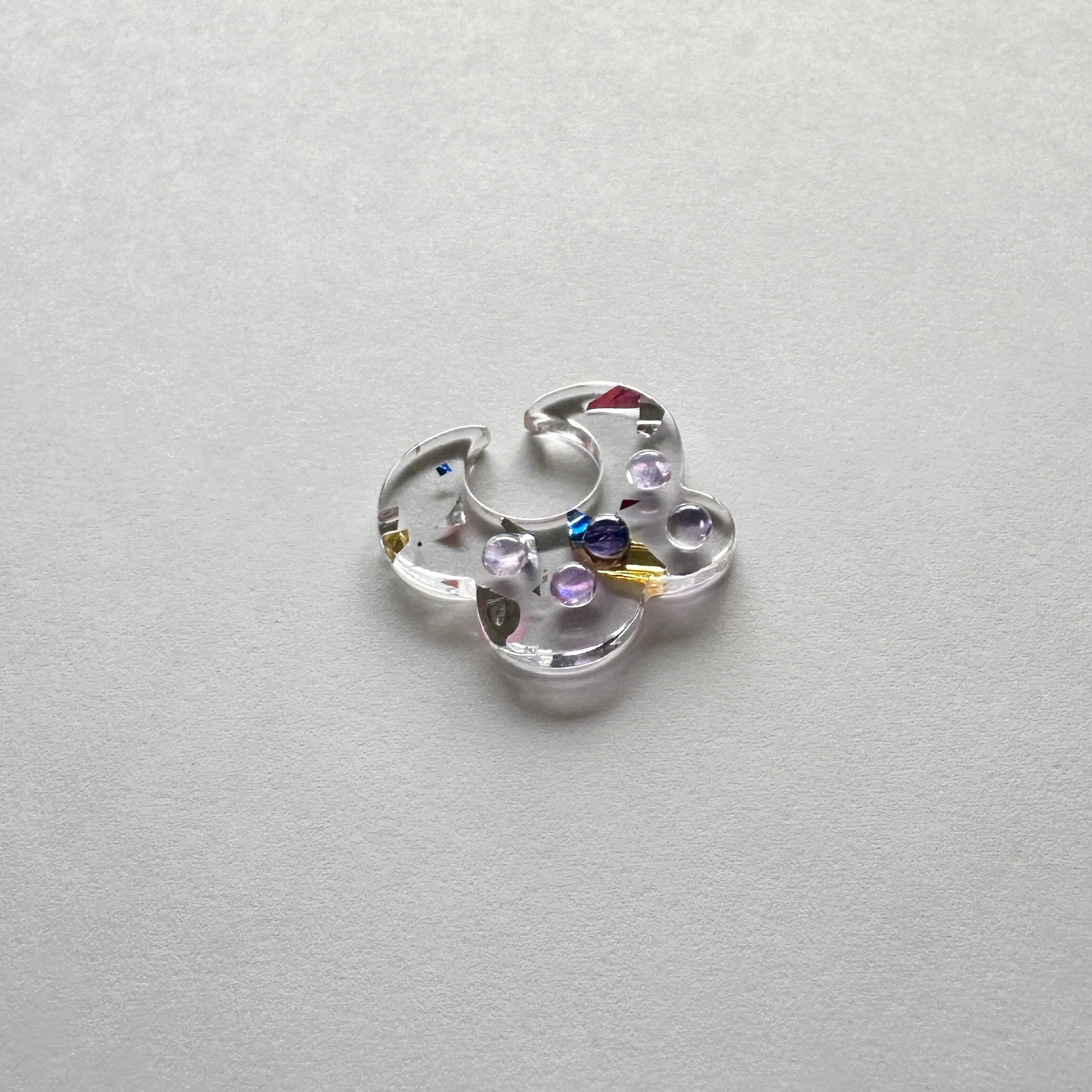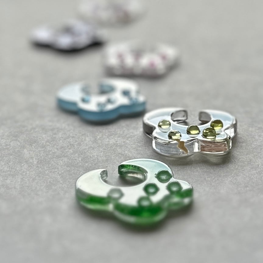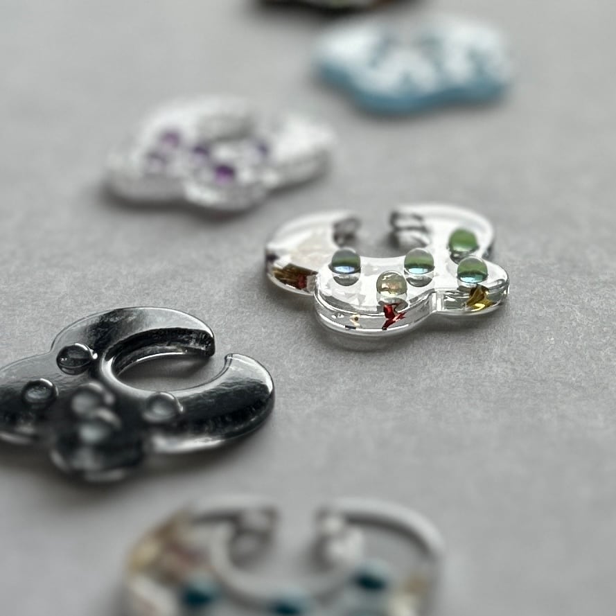 天然石のカボションなどをあしらった、アクリルのイヤーカフです。